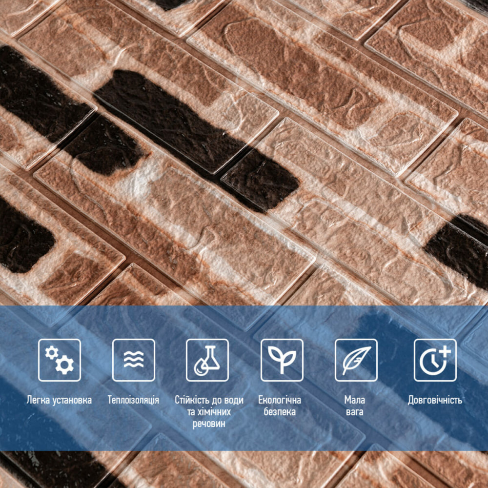 Самоклейні панелі з універсальним дизайном «під чорно-синю Катеринославську цеглу» підходять для поклеювання як у приватному житлі:
