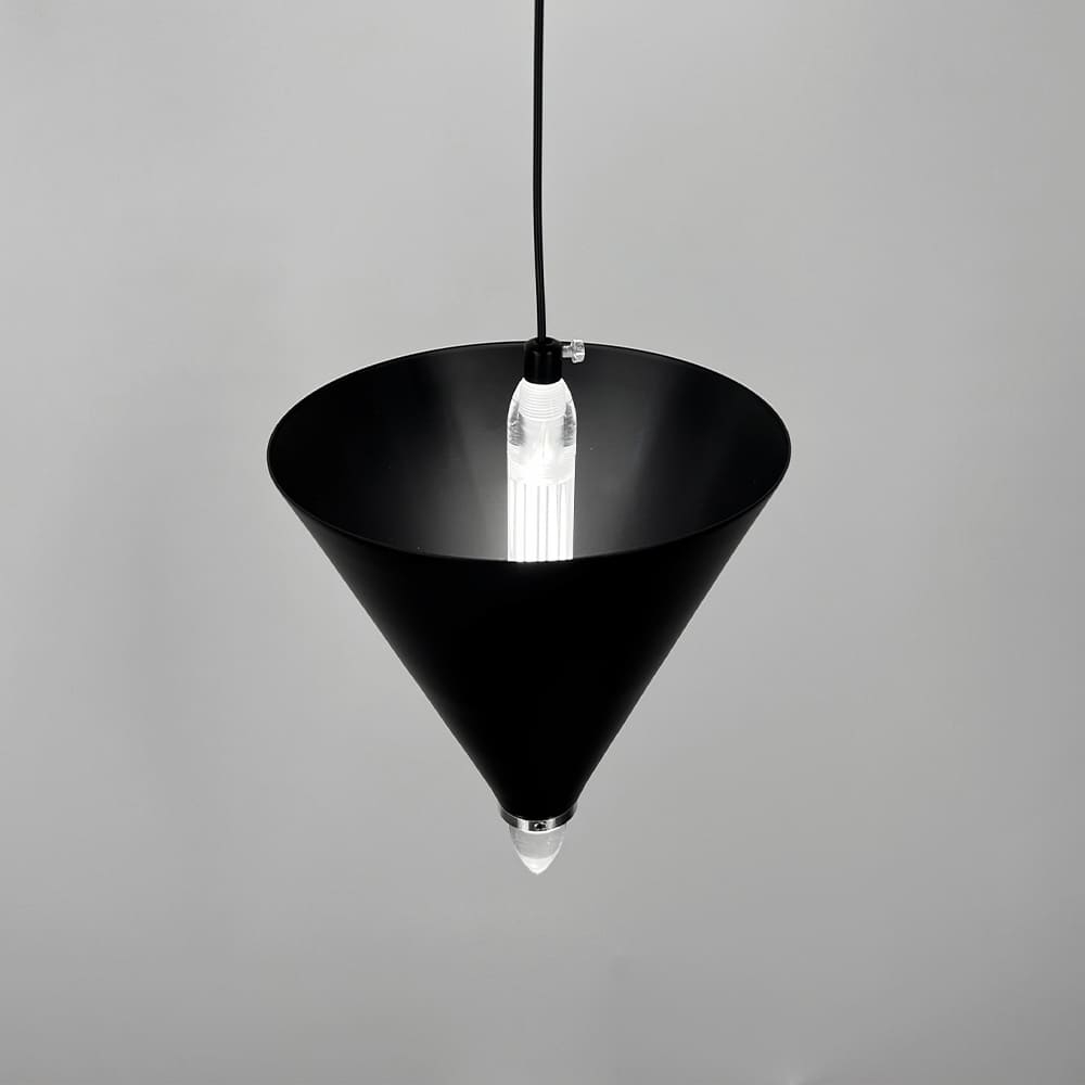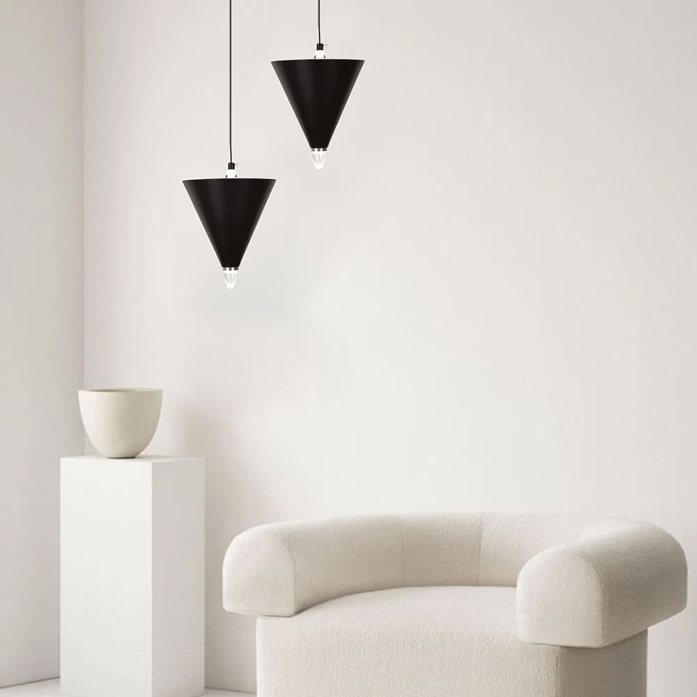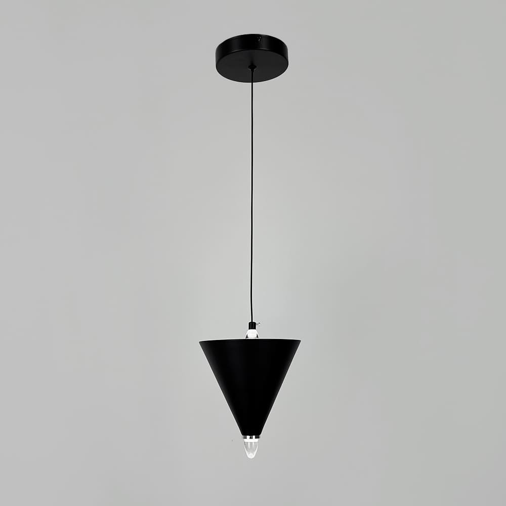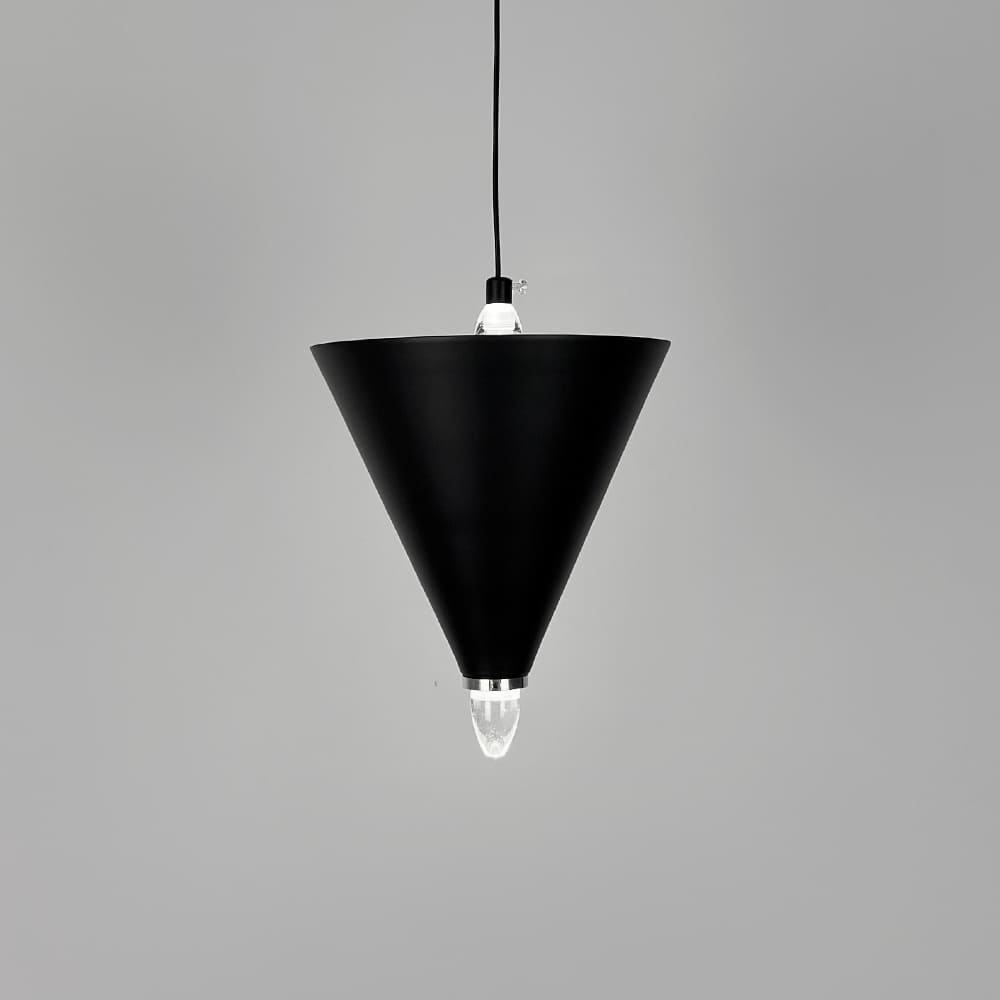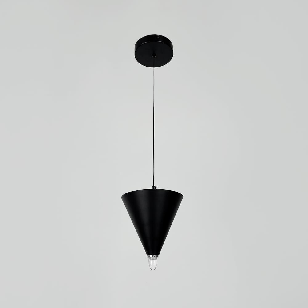 Підвісний світильник з геометричним конусним дизайном поєднує сучасний стиль і мінімалістичну естетику, створюючи виразний акцент у будь-якому інтер’єрі. Його унікальна конструкція складається з чорних металевих конусів, розташованих на світловій основі, з маленьким прозорим світловим елементом унизу, який додає світильнику легкості. Хромована фурнітура надає моделі додаткового шарму та елегантності. Світильник оснащений вбудованими світлодіодами з нейтральною температурою світла, що гарантує комфортне та рівномірне освітлення. Модель представлена в трьох варіантах: Один конус: розмір підвісу Ø 17х25 см — 3 Вт Два конуси: розмір підвісу Ø 17х40 см — 5 Вт Три конуси: розмір підвісу Ø 17х50 см — 8 Вт Завдяки регульованій висоті цей світильник легко адаптується до будь-яких просторів. Його чіткі форми та продумана конструкція роблять цей світильник не тільки надійним джерелом світла, а й стильним акцентом у вітальні, спальні чи робочій зоні.