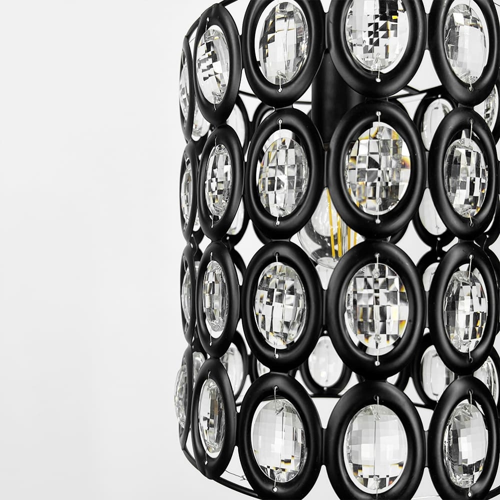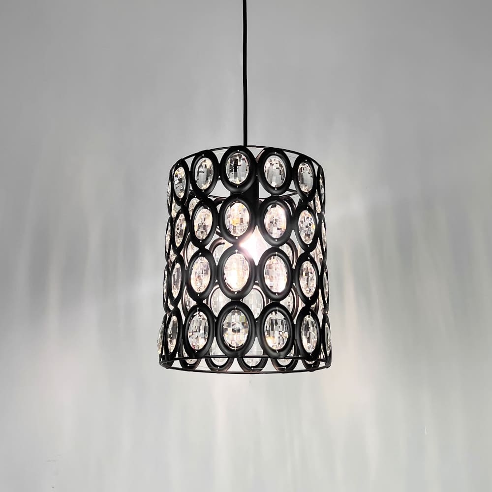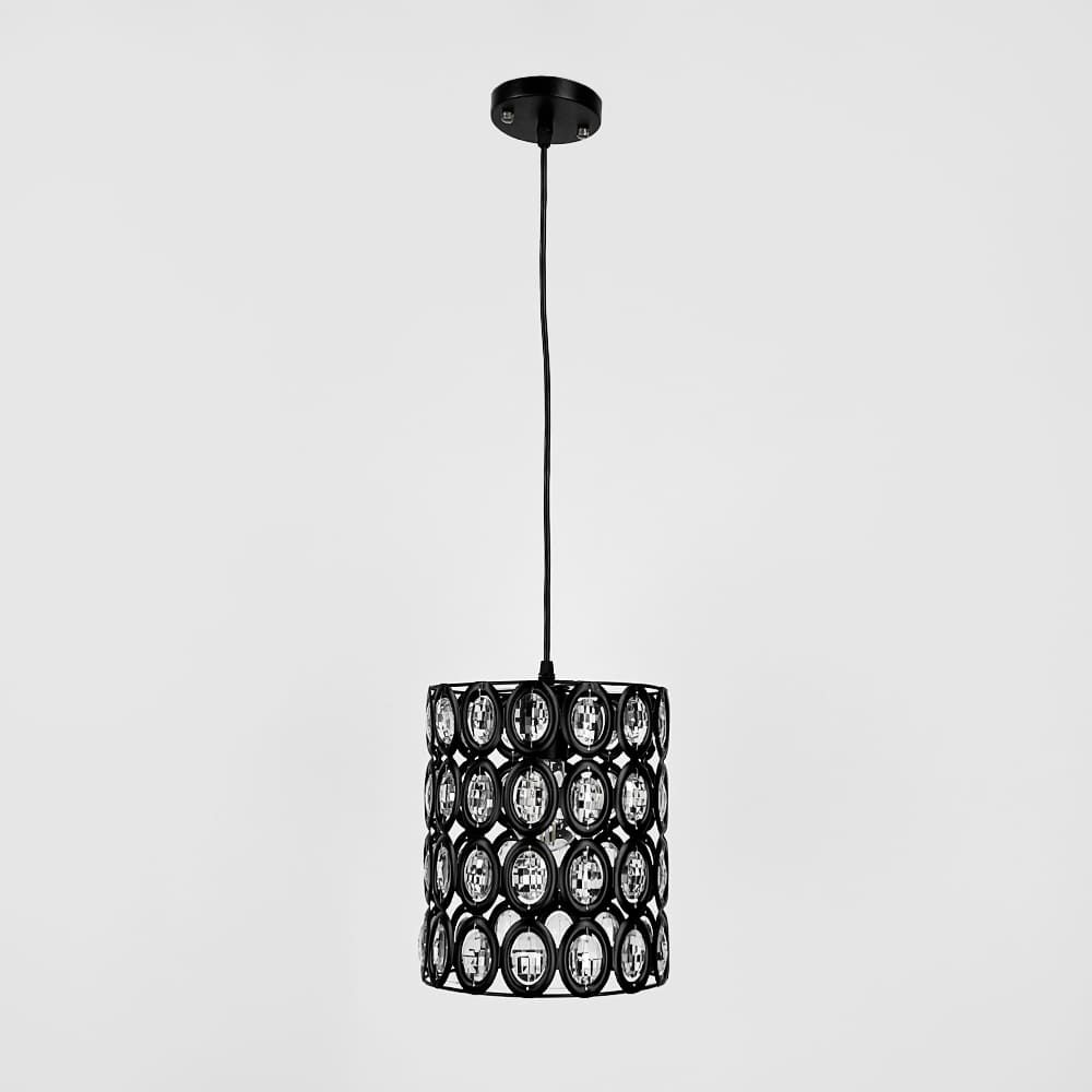 Цікава модель підвісного світильника, який вирізняється своїм оригінальним плафоном, виготовленим з чорного металу та інкрустованим прозорим камінням. Такий стильний дизайн створює ефект світлових відблисків, додаючи інтер’єру особливого шарму. Діаметр плафона — 21 см, висота — 25 см. Усередині плафона розташована одна лампа Е27, що дозволяє забезпечити оптимальне освітлення. Висота світильника регулюється від 35 см до 100 см, що дає можливість адаптувати його до будь-якої висоти стелі або дизайну приміщення. Цей підвісний світильник стане чудовим доповненням для сучасних інтер’єрів, додаючи нотки розкоші та елегантності у вашому домі чи офісі.