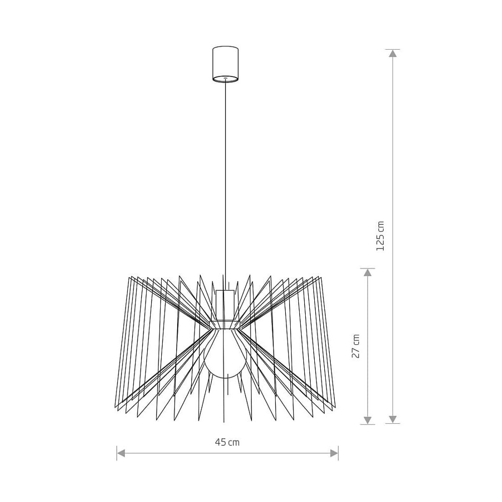 Висота складає 1250 мм, довжина – 450 мм, ширина – 450 мм. Обов'язково зважайте на площу кімнати для успішного підбору світильника.