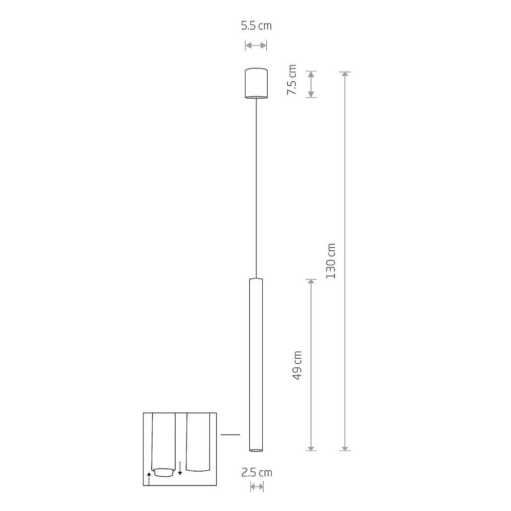 Висота складає 1300 мм, довжина – 25 мм, ширина – 25 мм. Обов'язково зважайте на площу кімнати для успішного підбору світильника.