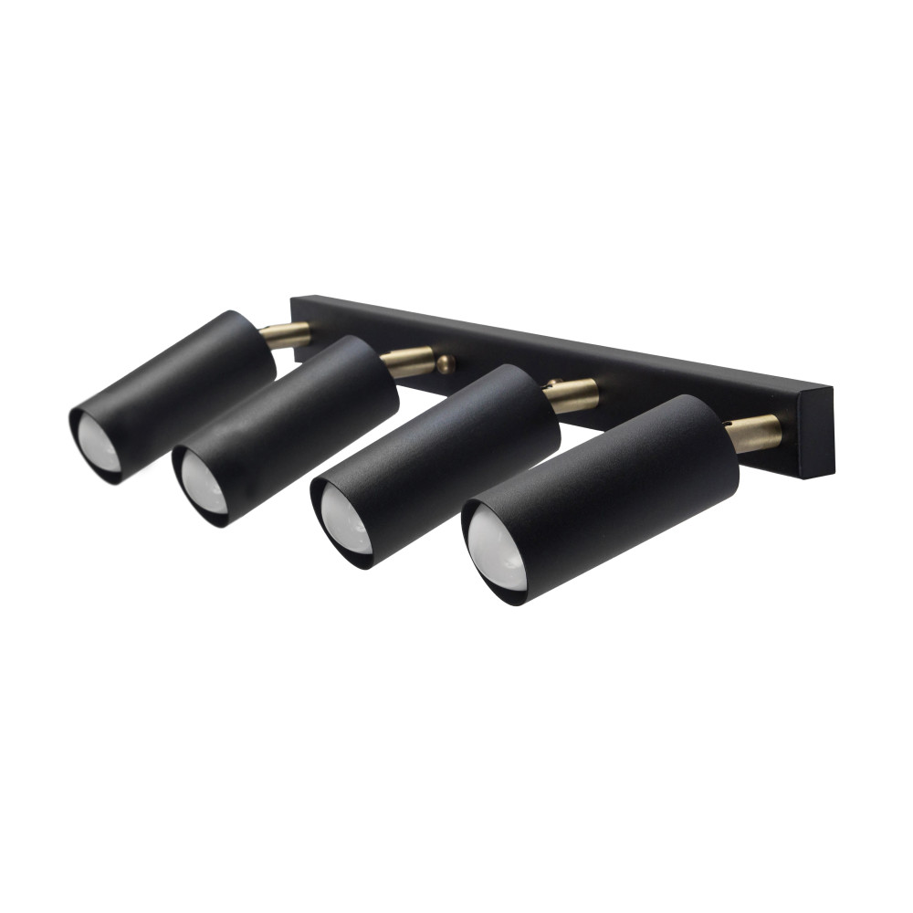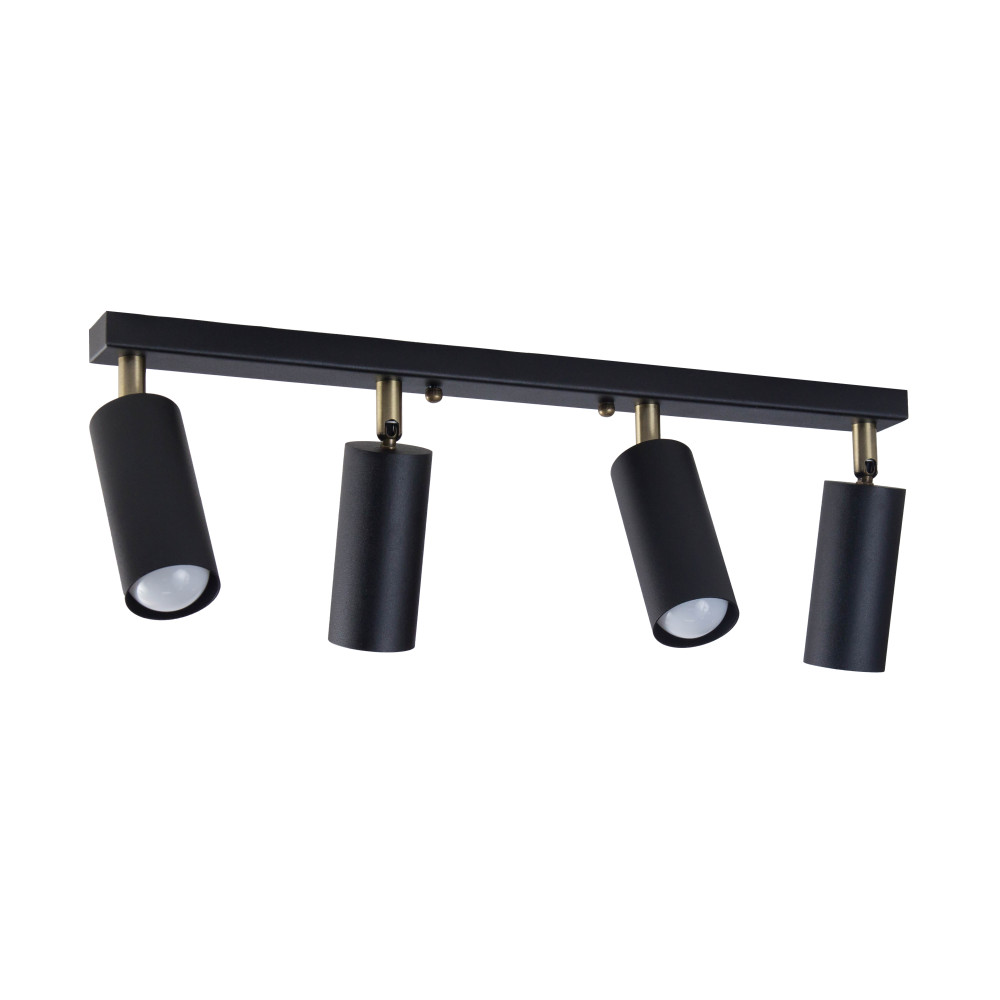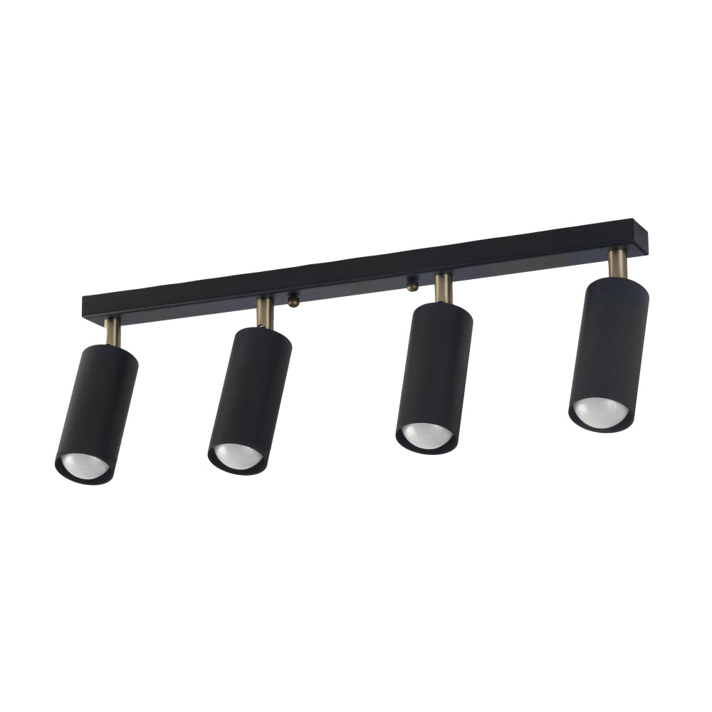 Стельовий світильник на чотири лампи з металевими плафонами циліндричної форми з поворотним механізмом.