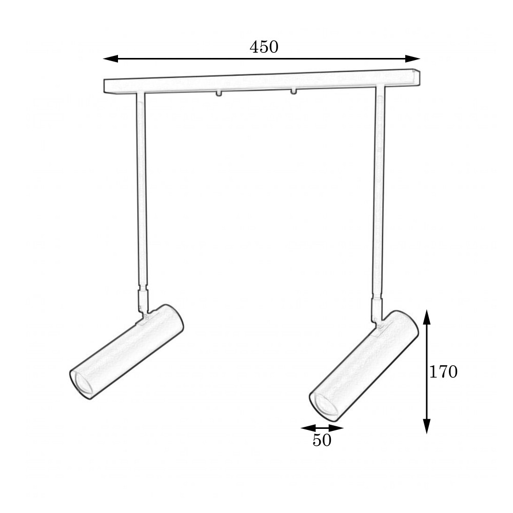 Стельовий світильник (спот) у сучасному стилі на дві лампи з плафонами циліндричної форми з поворотним механізмом.