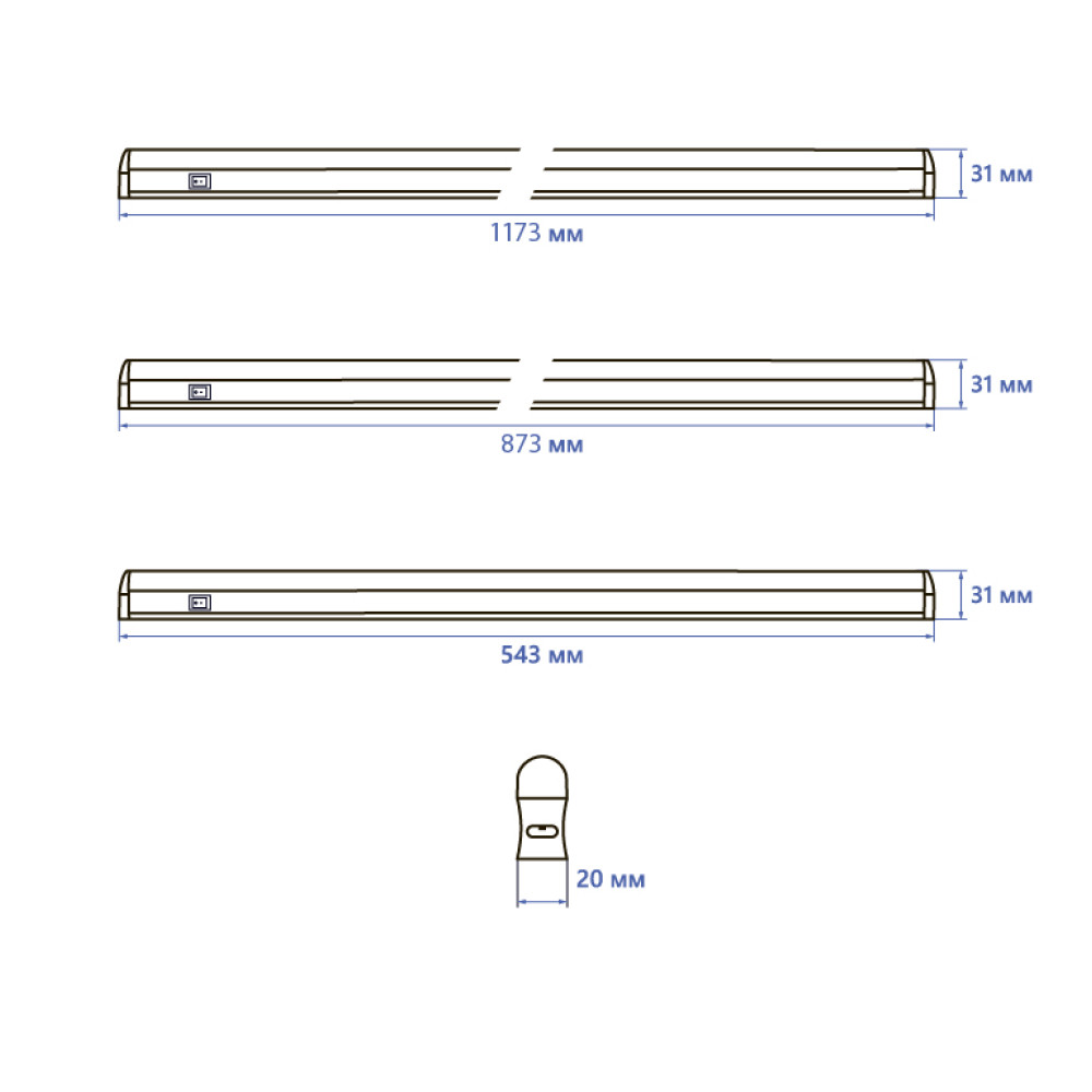 Ширина світильника – 20 мм;