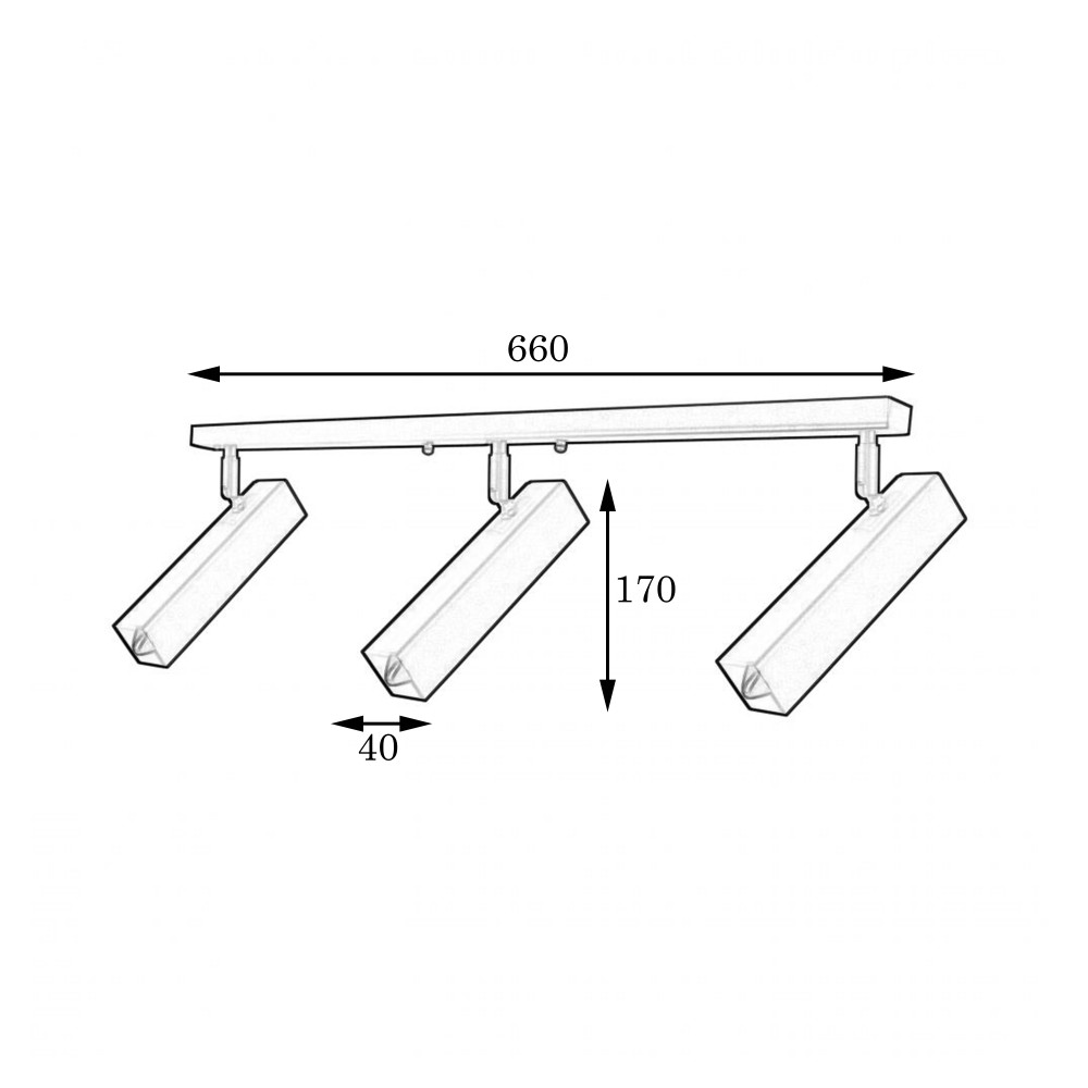 Настінно-стельовий світильник (спот) на три лампи в сучасному стилі з плафоном прямокутної форми з поворотним механізмом.