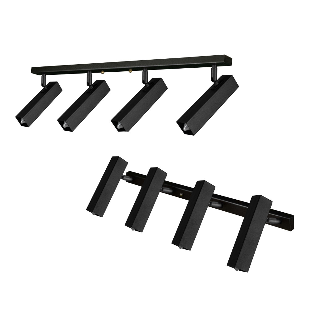 Настінно-стельовий світильник (спот) на чотири лампи в сучасному стилі з плафоном прямокутної форми з поворотним механізмом.