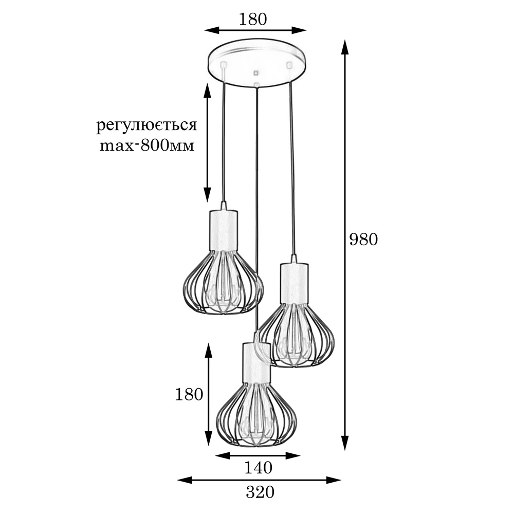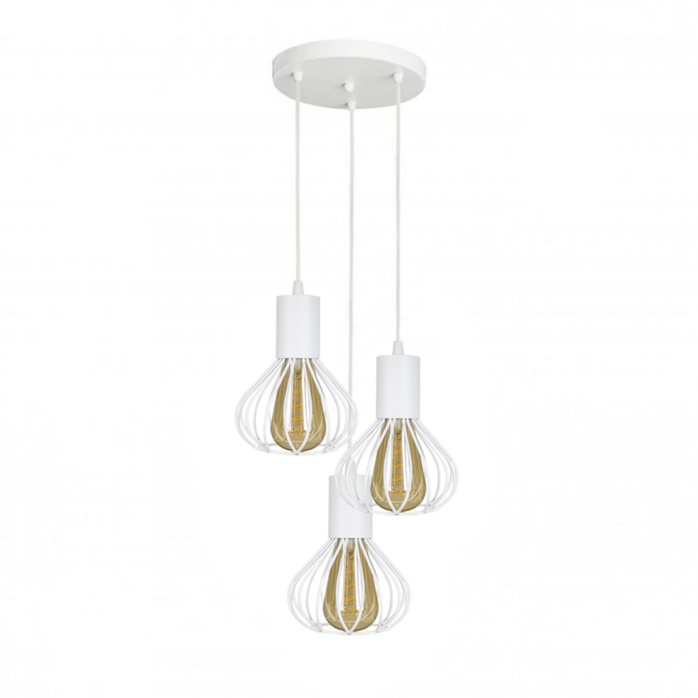 Підвісний світильник у стилі Лофт на три лампи із плафоном у вигляді металевого каркасу. Ви можете самостійно виставити потрібну довжину дроту.