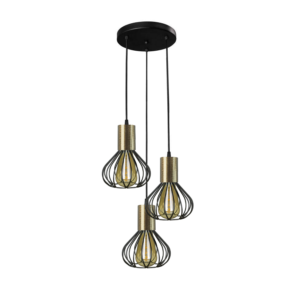 Підвісний світильник у стилі Лофт на три лампи із плафоном у вигляді металевого каркасу. Ви можете самостійно виставити потрібну довжину дроту.