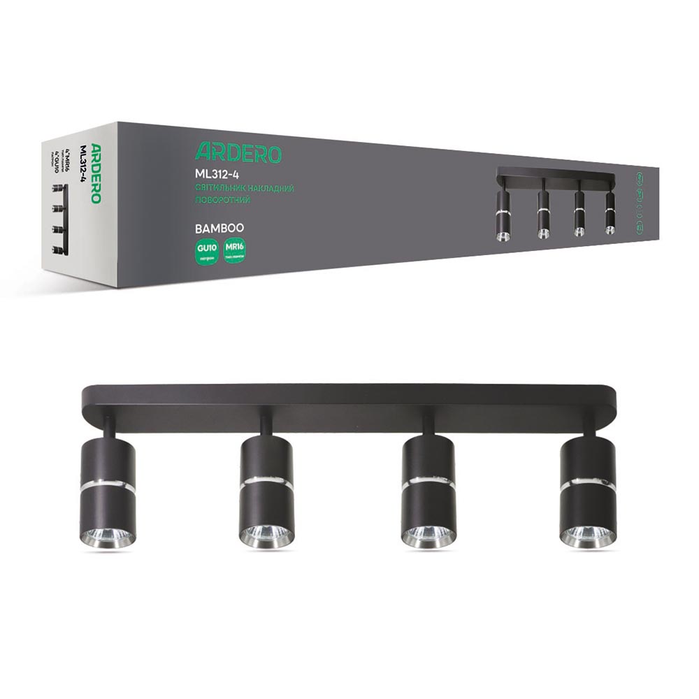 Немає відгуків про товар Світильник накладний поворотний Ardero ML312-4 BAMBOO GU10 чорний + хром