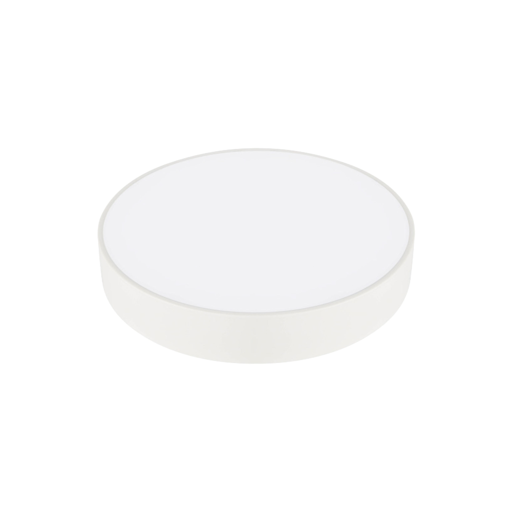 Накладний світлодіодний стельовий світильник круглої форми має денний колір освітлення.