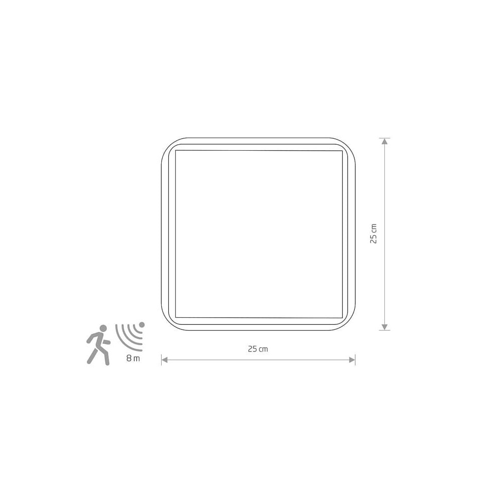 Висота складає 80 мм, довжина – 250 мм, ширина – 250 мм.