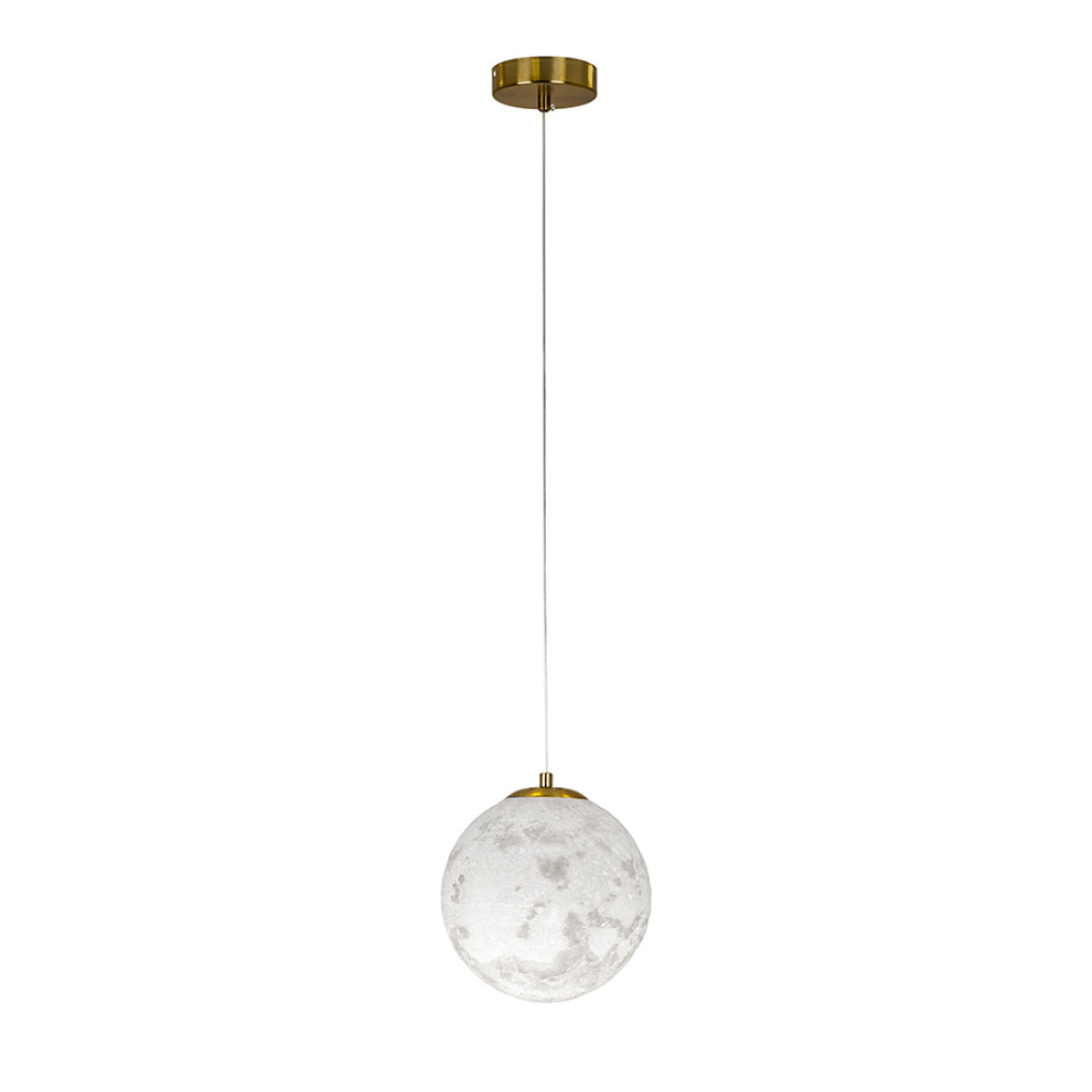 Підвісний світильник у сучасному стилі на одну лампу з декоративним пластиковим плафоном з імітацією місячної поверхні.