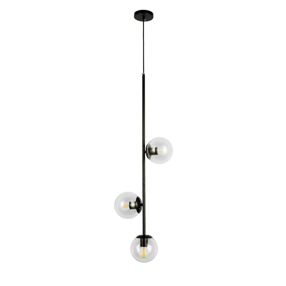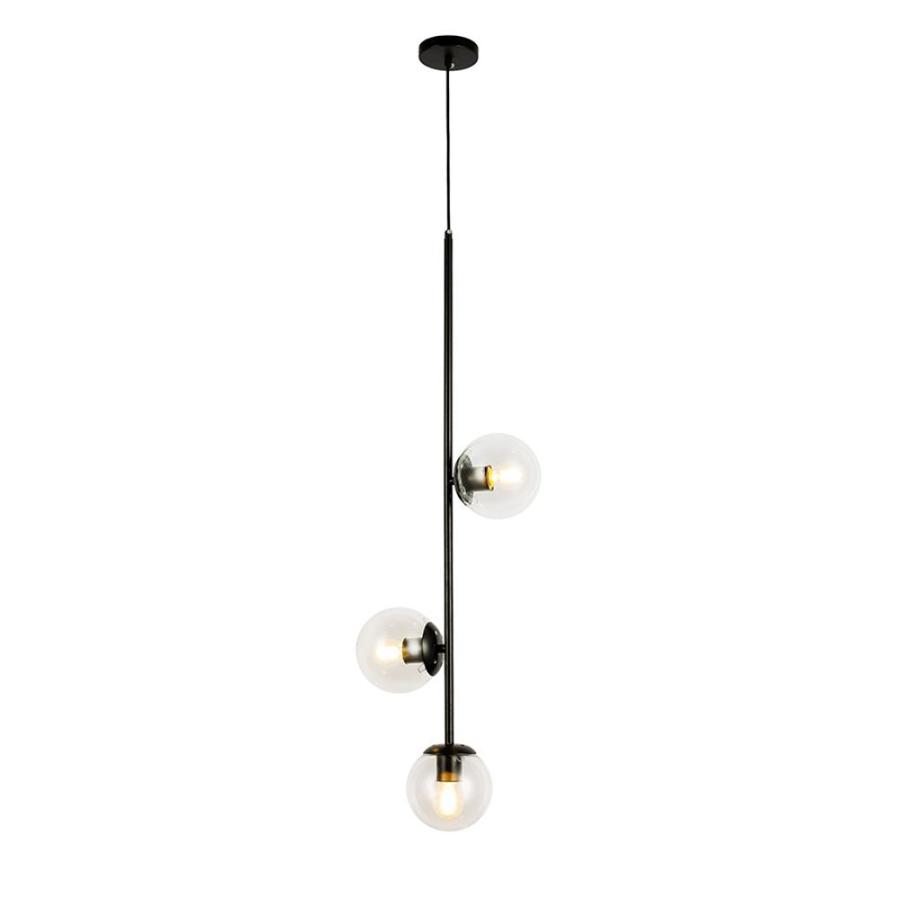 Світильник підвісний, кулі Levistella 7521015-3 BK+CL чорний, плафон прозорий