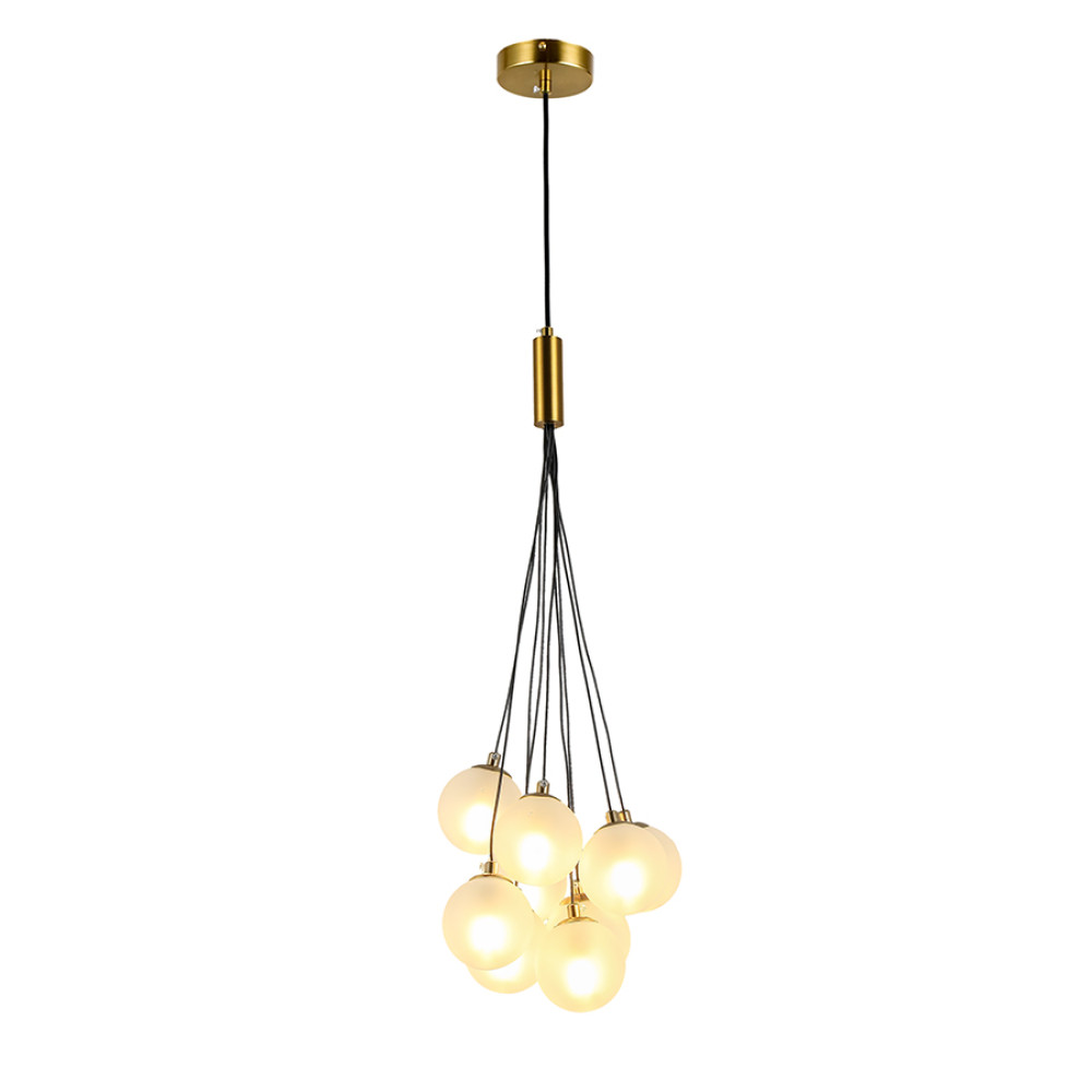 Сучасний стильний підвісний світильник на дев'ять ламп зі скляними плафонами-кулями діаметром 8 см.