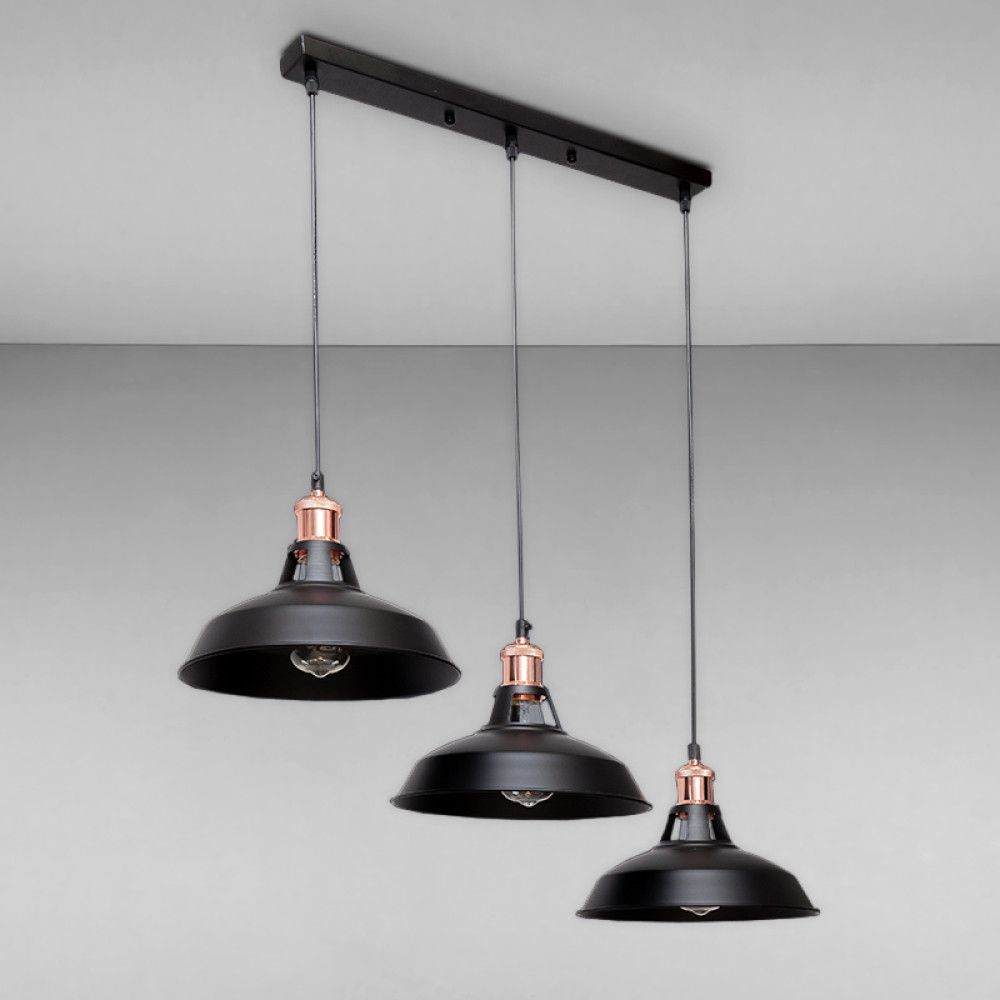 Декоративний підвісний світильник у стилі лофт на три лампи з плафонами у вигляді тарілки.