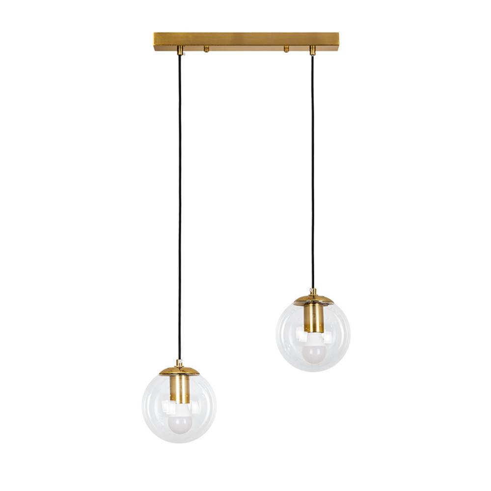 Підвісний світильник на дві лампи в сучасному стилі зі скляними плафонами сферичної форми.