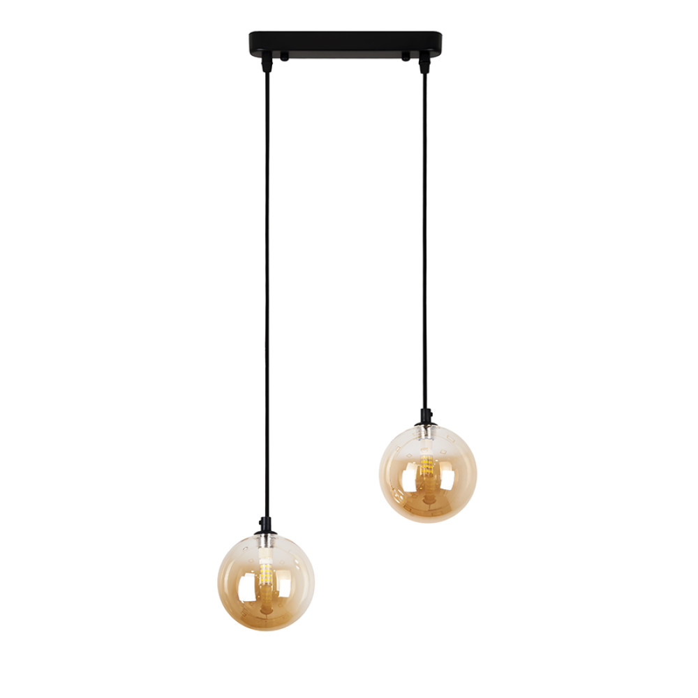 Підвісний світильник (люстра) на дві лампи в сучасному стилі зі скляними плафонами сферичної форми.