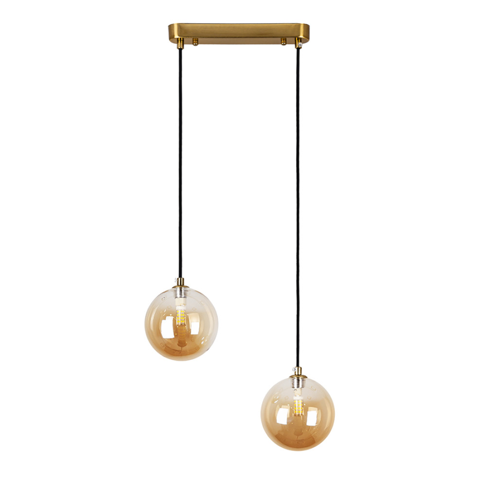 Підвісний світильник (люстра) на дві лампи у сучасному стилі зі скляними плафонами сферичної форми.