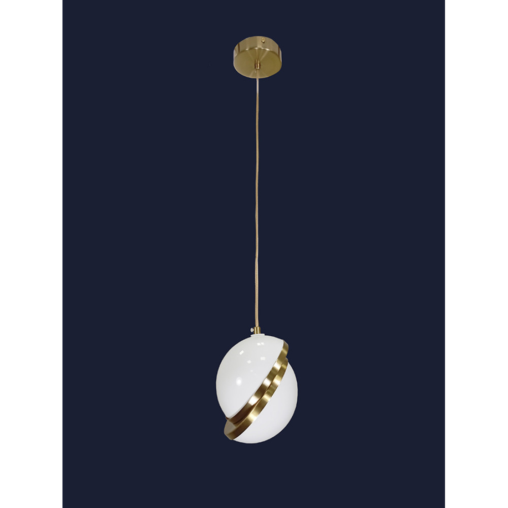 Декоративний підвісний світильник у стилі модерн на одну лампу із плафоном у вигляді двох напівсфер.Найкраще використовувати в приміщенні загальною площею 3 м. кв., при використанні ламп 6 Вт (LED) або 60 Вт (стандартна).