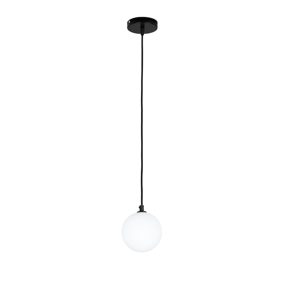 Підвісний світильник на одну лампу зі скляним плафоном у формі кулі.