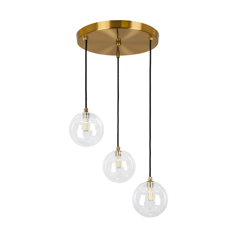 Стильний підвісний світильник на три лампи зі скляними плафонами у формі кулі.