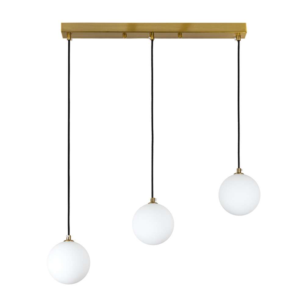 Стильний підвісний світильник на три лампи зі скляними плафонами у формі кулі.