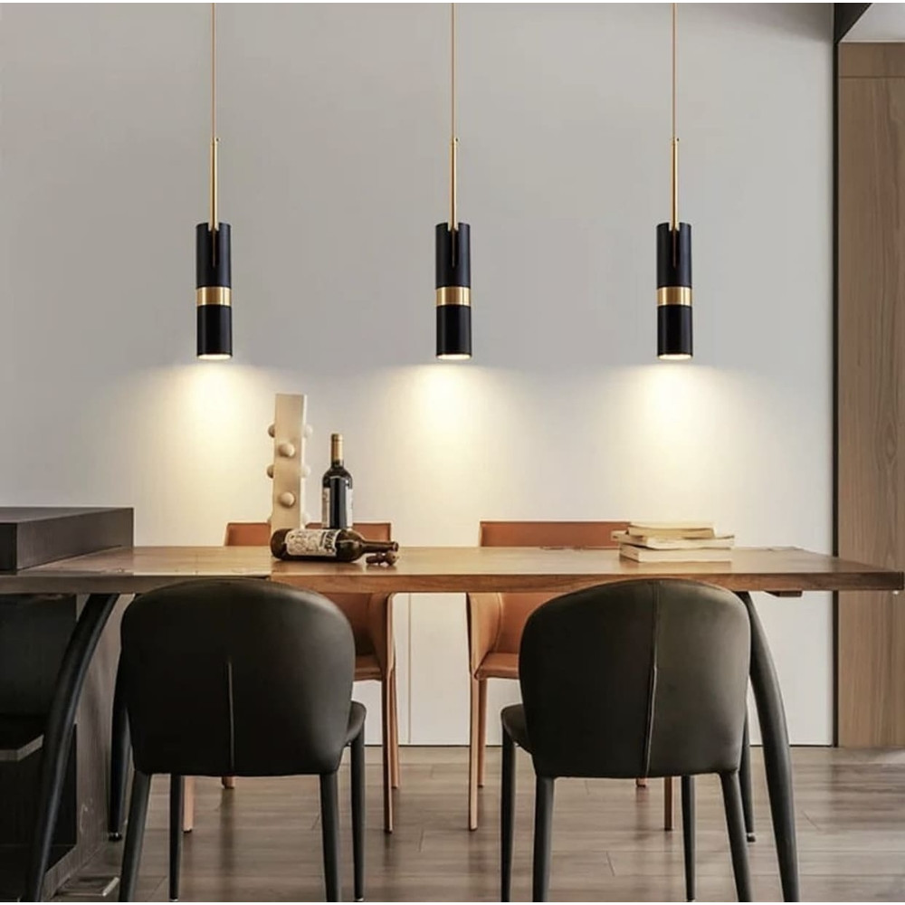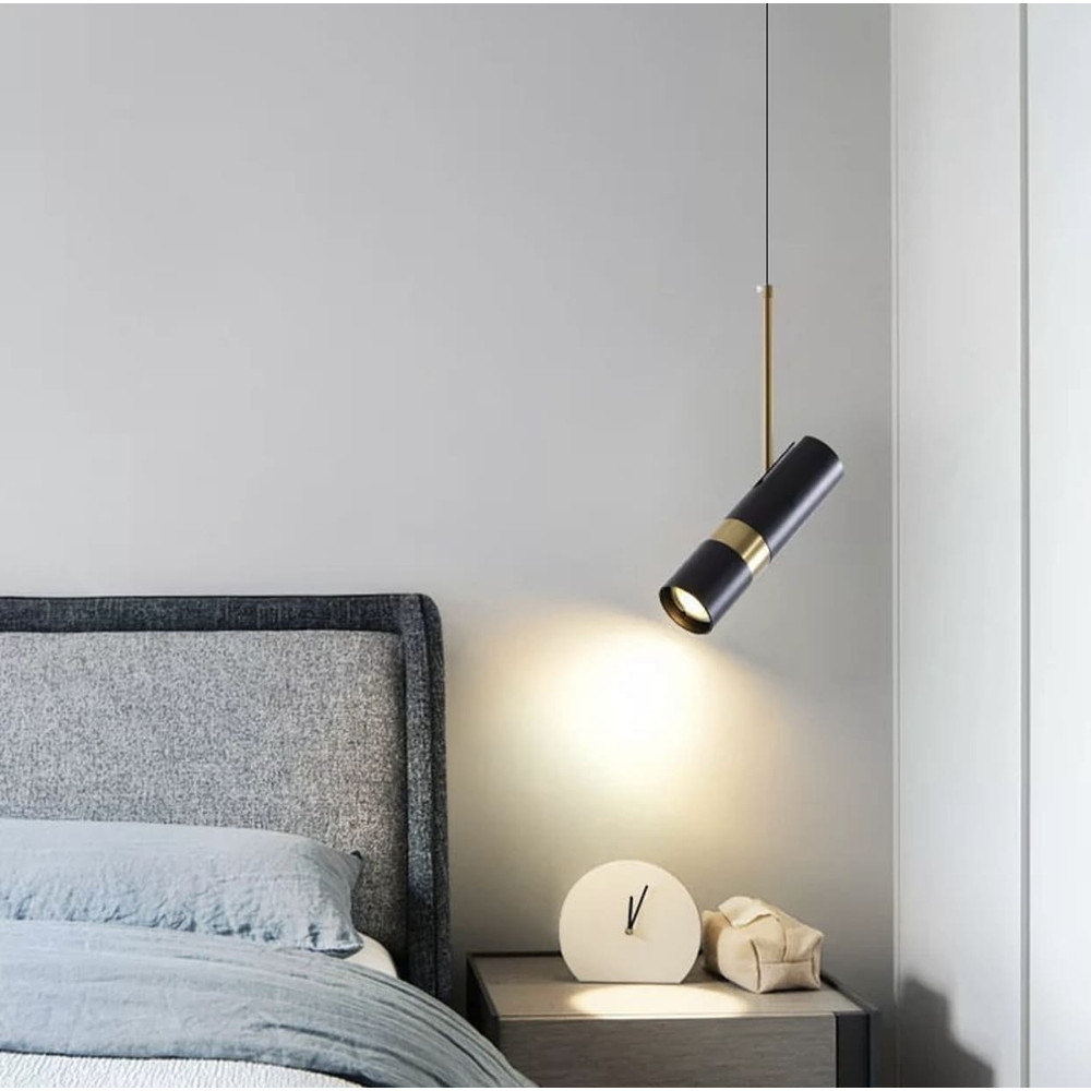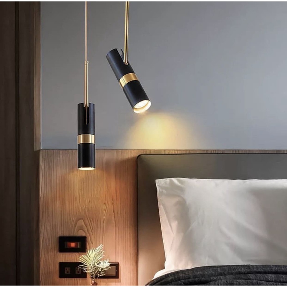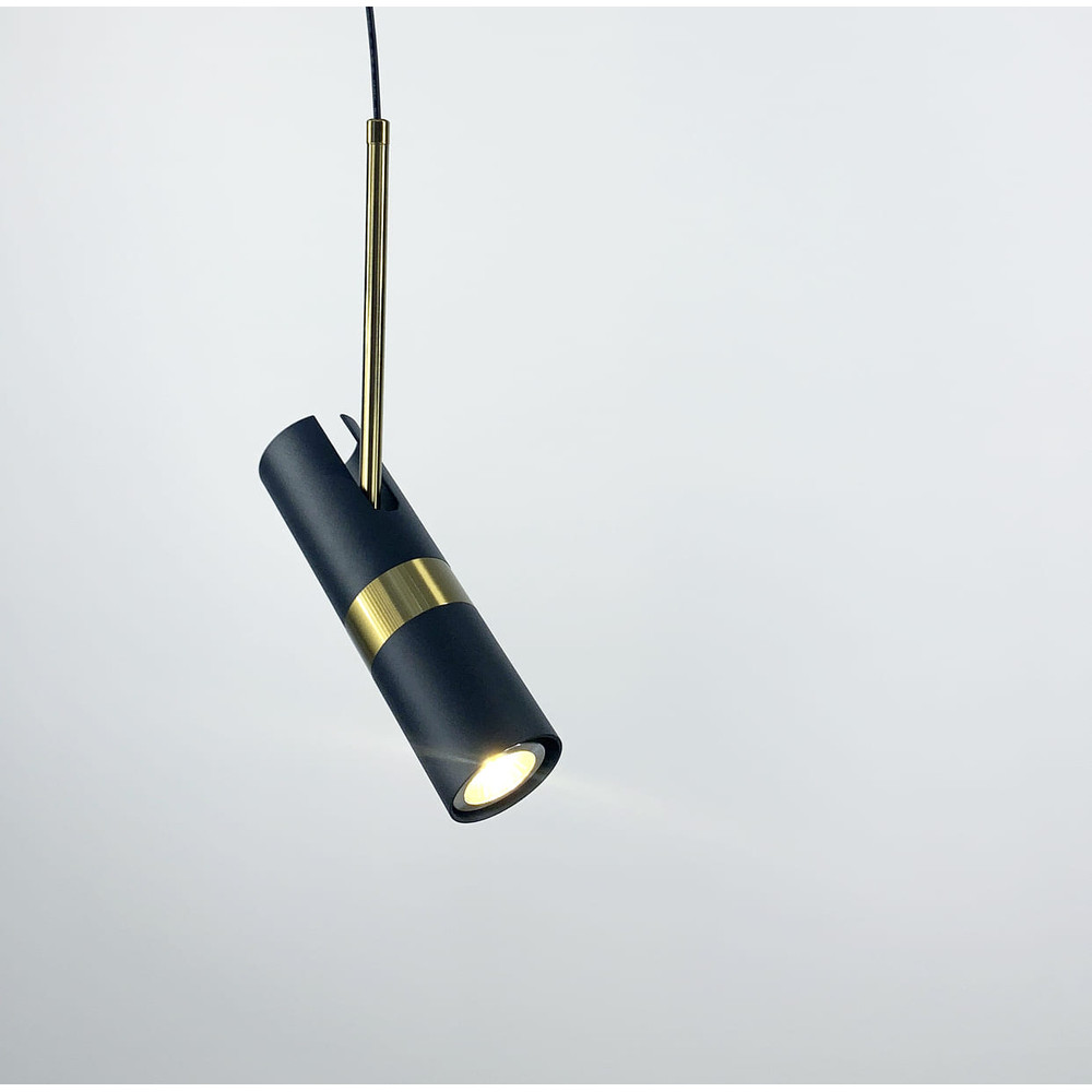 Підвісний світильник у стилі Лофт на одну лампу з металевим плафоном циліндричної форми з поворотним механізмом та золотистою фурнітурою.