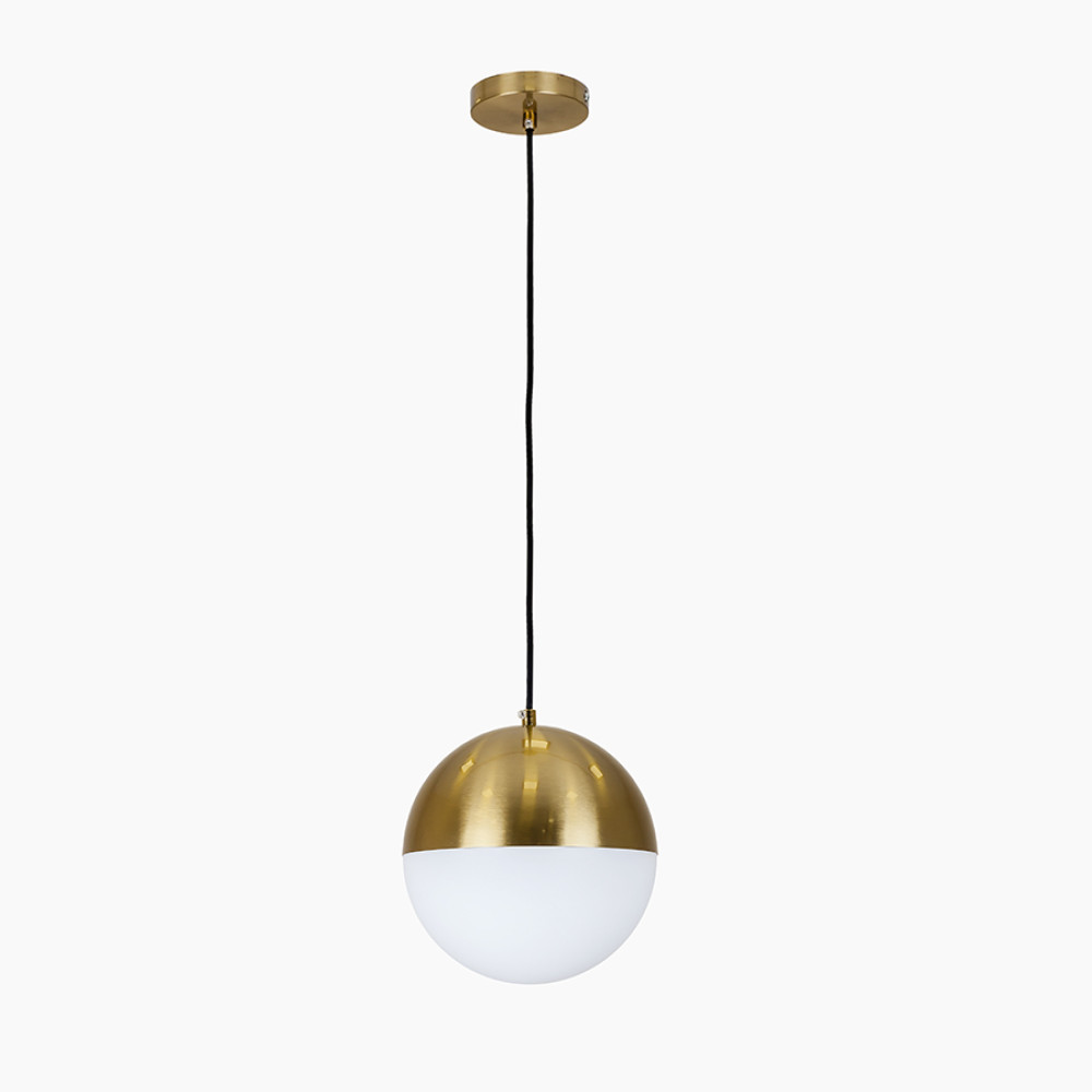 Підвісний світильник на одну лампу в сучасному стилі з плафоном сферичної форми. Верхня напівсфера плафона з металу, нижня напівсфера зі скла.
