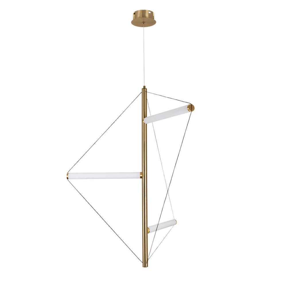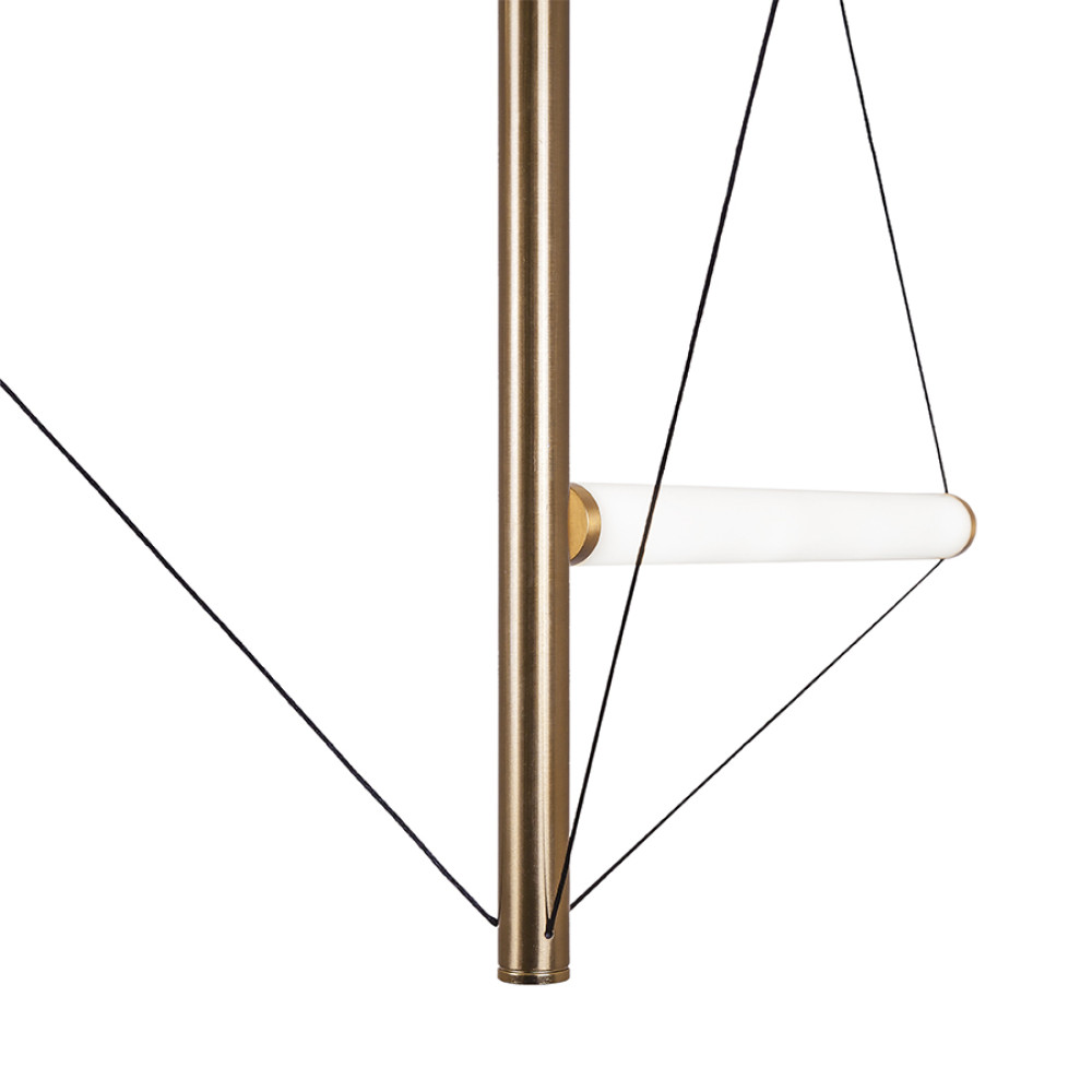 Декоративний підвісний світлодіодний світильник у сучасному стилі на три джерела світла у вигляді горизонтальних трубок на вертикальному металевому стрижні.
