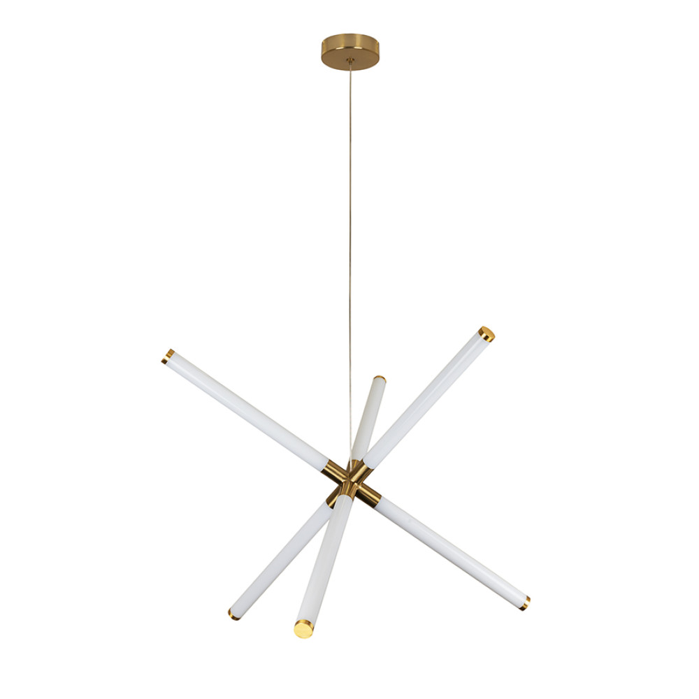 Декоративний підвісний світлодіодний світильник у сучасному стилі на шість джерел світла у вигляді трубок, які з'єднані в одній точці і направлені в різні боки.