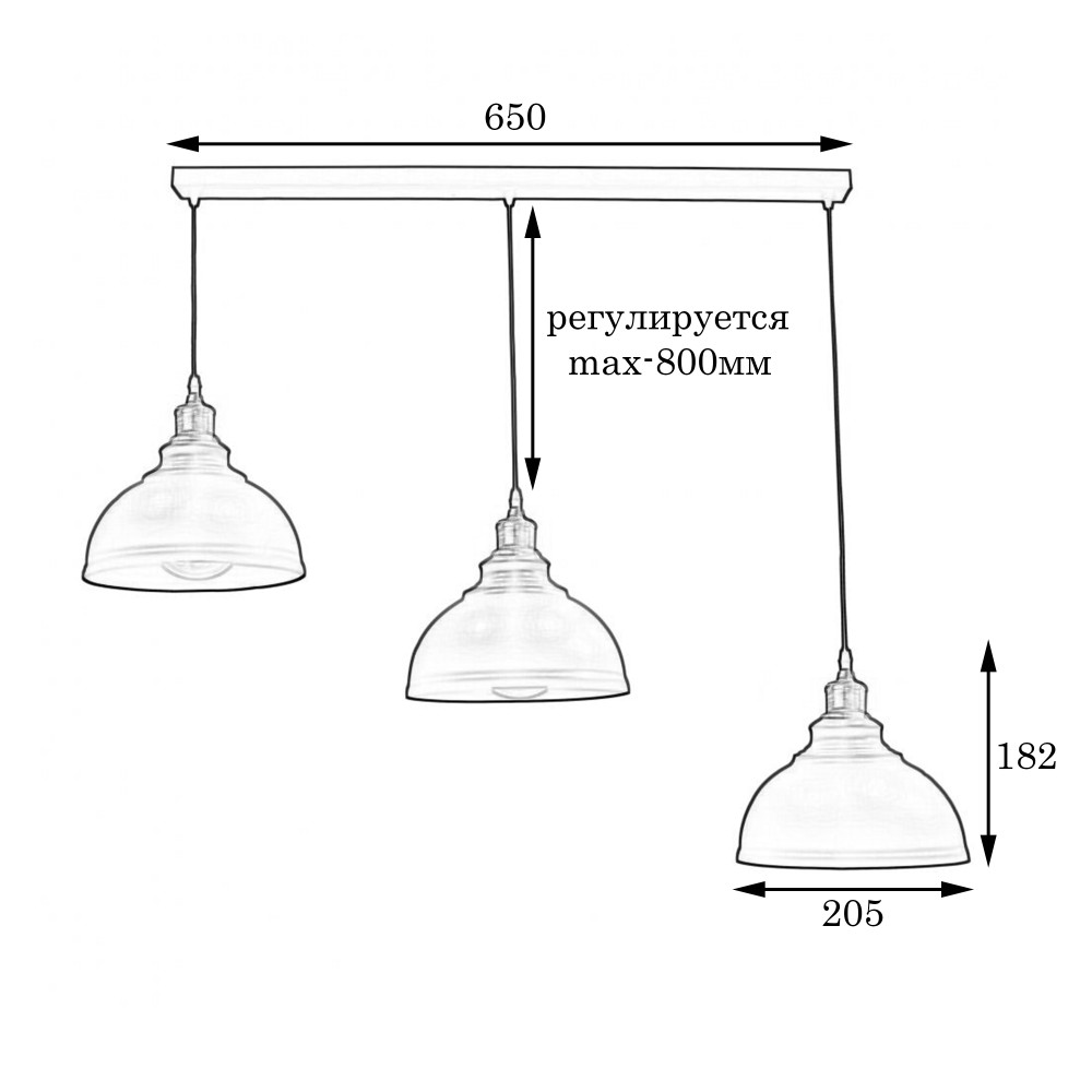 Підвісний світильник у стилі лофт на три лампи з металевим плафоном форми бані.Ви можете самостійно виставити потрібну довжину дроту на кожен плафон.