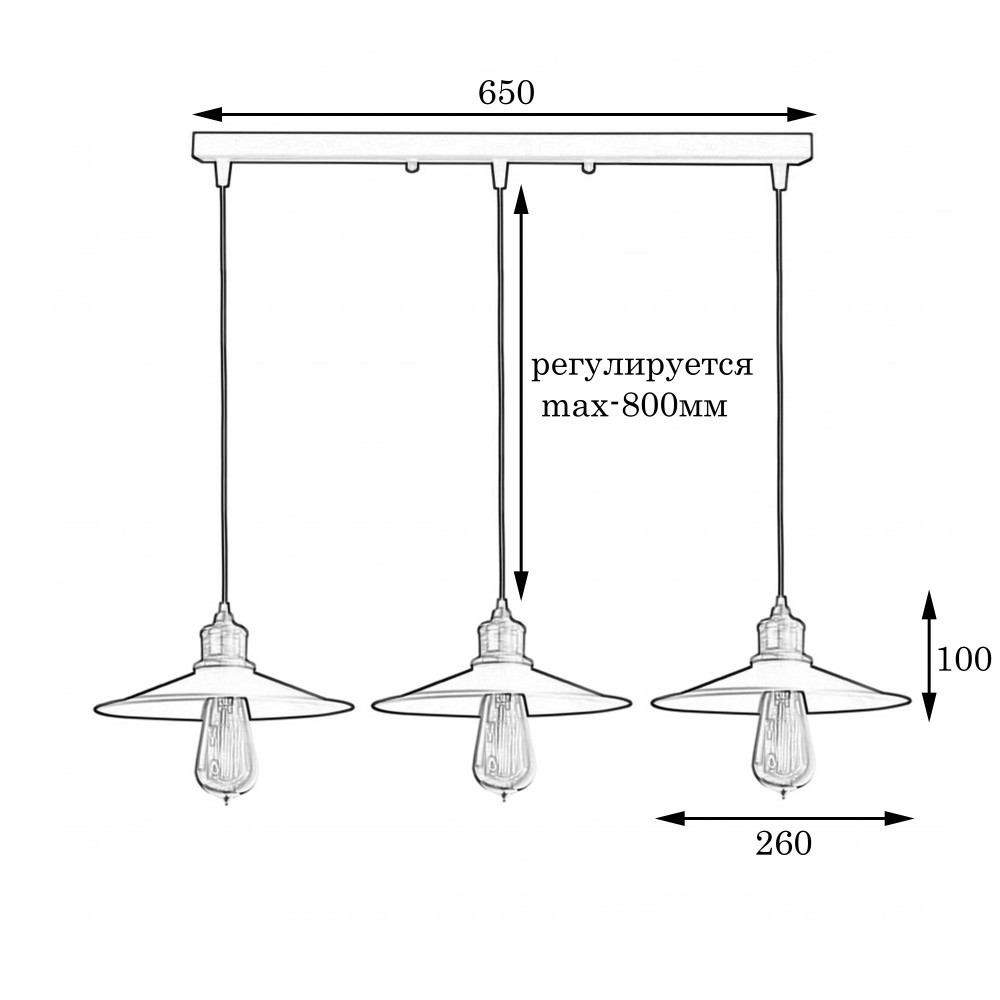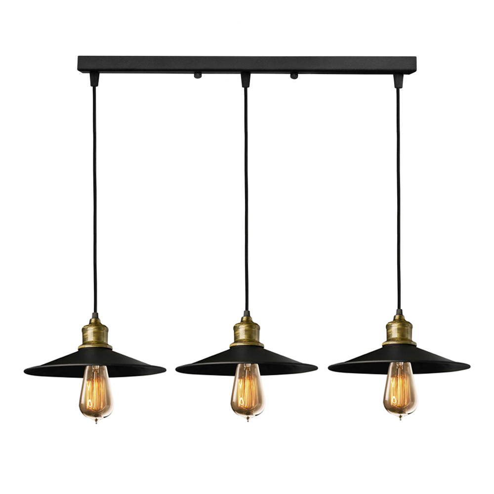Підвісний світильник у стилі лофт на три лампи з металевим плафоном форми тарілки. Ви можете самостійно виставити потрібну довжину дроту на кожен плафон.