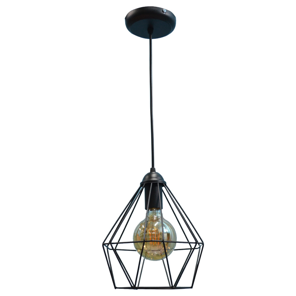 Підвісний світильник в стилі лофт на одну лампу з плафоном у вигляді металевого каркаса конусної форми.