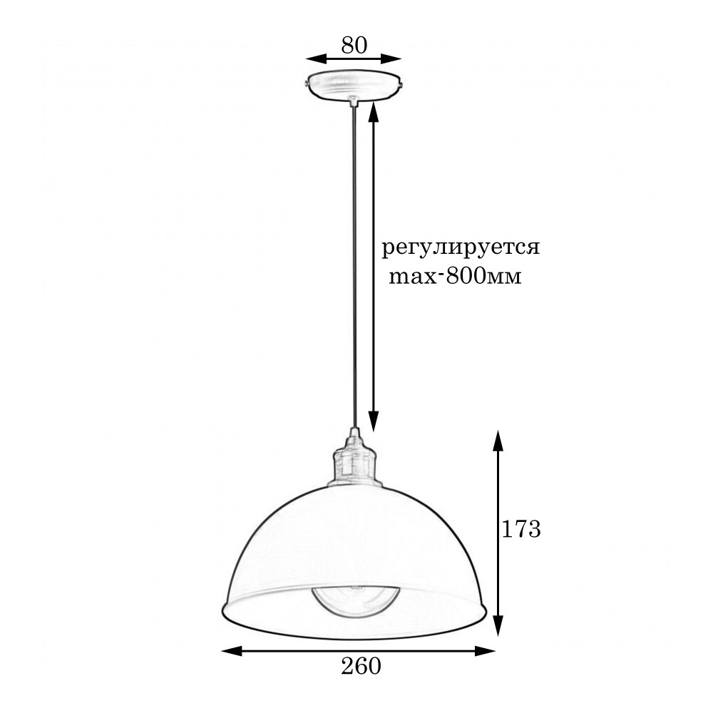 Підвісний світильник у стилі Лофт на одну лампу із металевим плафоном форми купола.