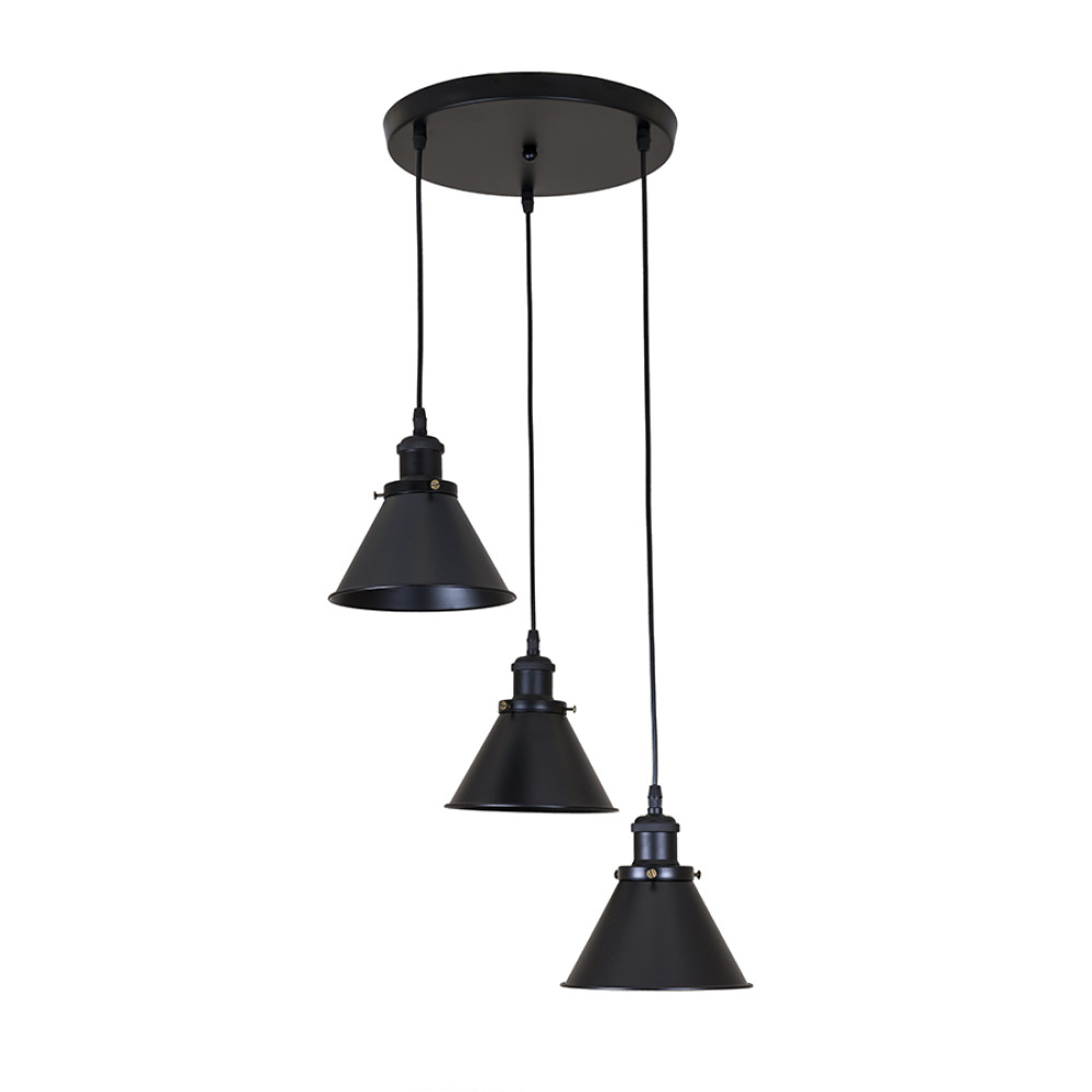 Підвісний світильник на три лампи в сучасному стилі з конус плафон форми.