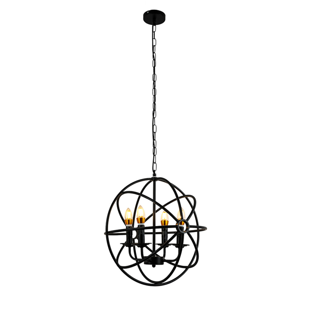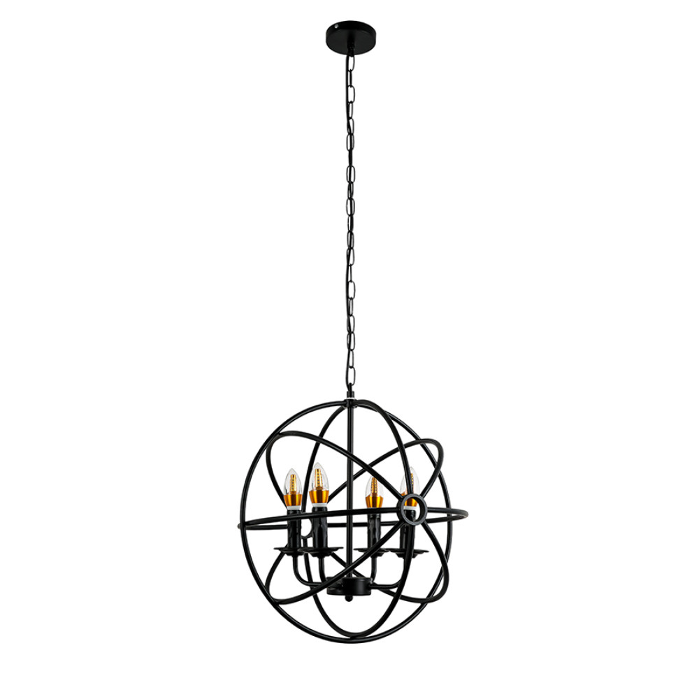 Декоративний підвісний світильник у стилі Лофт на чотири лампи. Один загальний металевий плафон представлений у вигляді сфери: що складається з п'яти кілець, усередині якої розташоване джерело світла що імітує свічник. Завдяки своїй незвичайній формі світильник здатний створювати приємний світлотіньовий ефект при включеному джерелі світла.