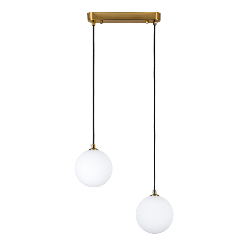Підвісний світильник (люстра) на дві лампи у сучасному стилі зі скляними плафонами сферичної форми.