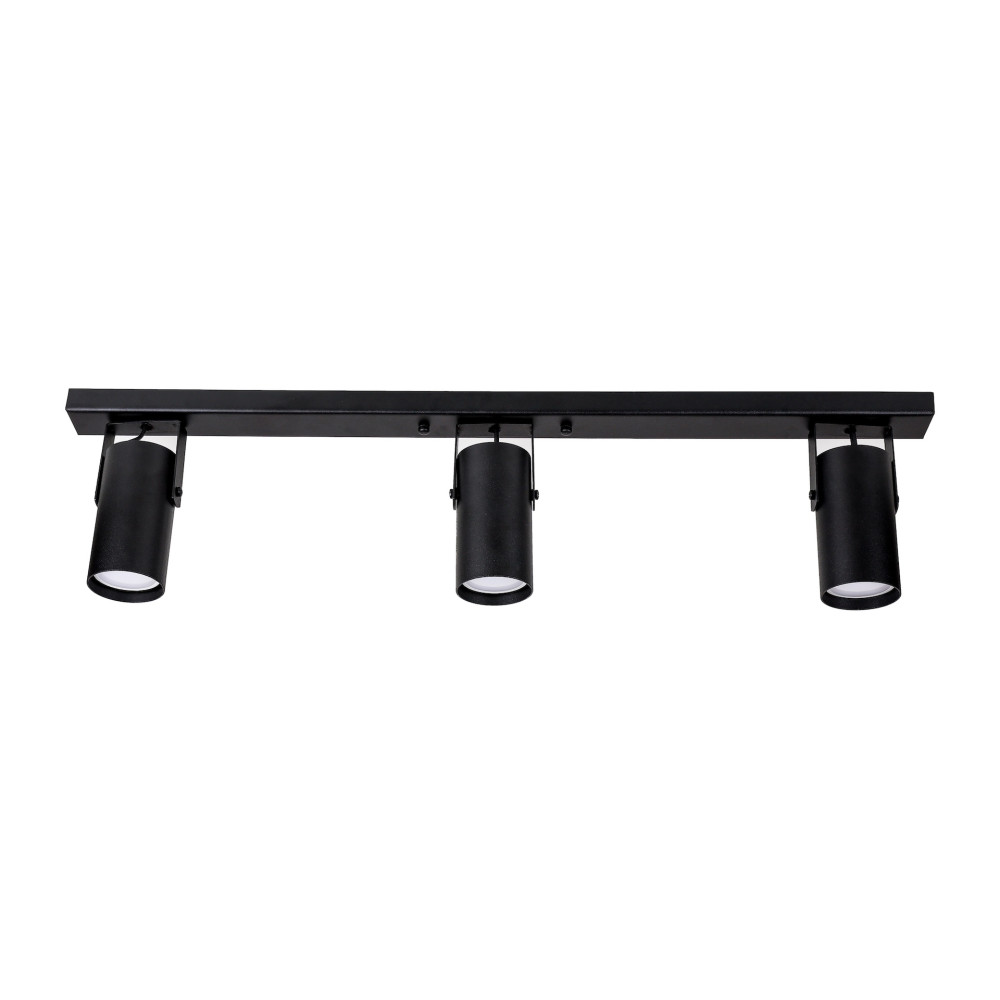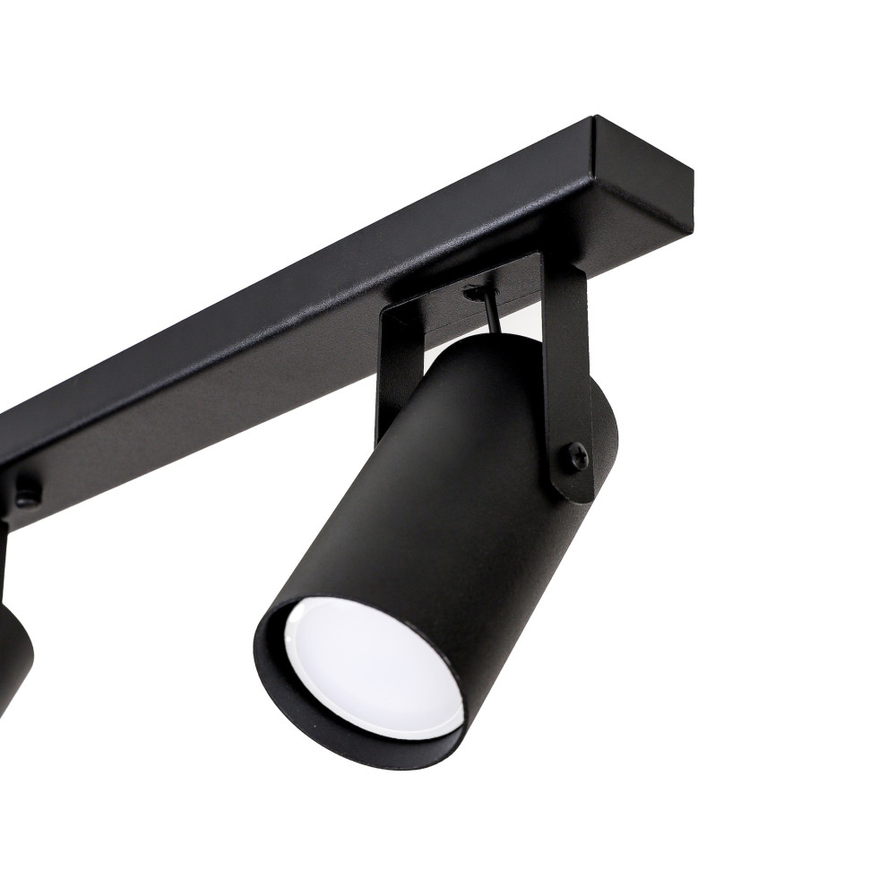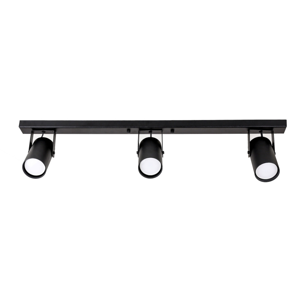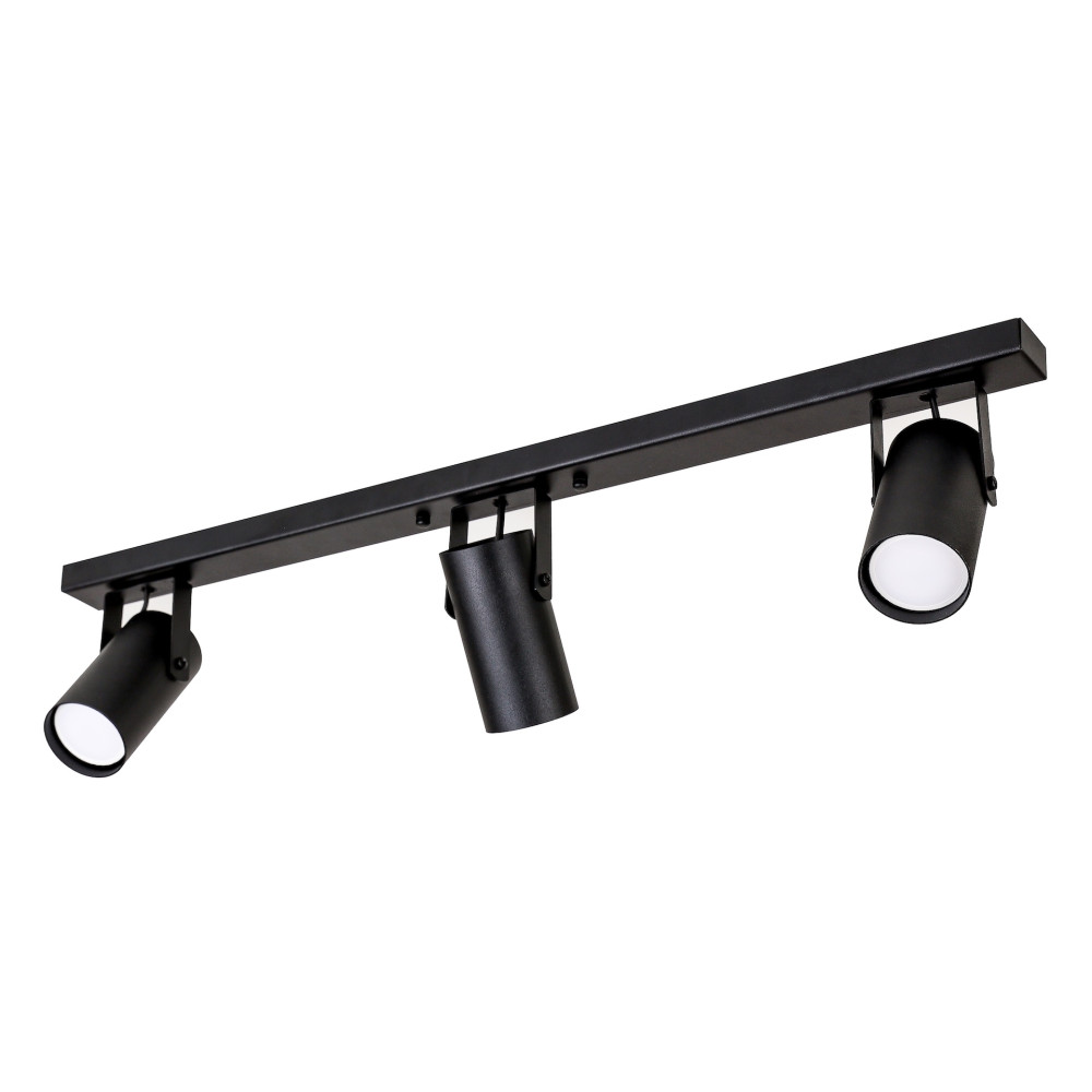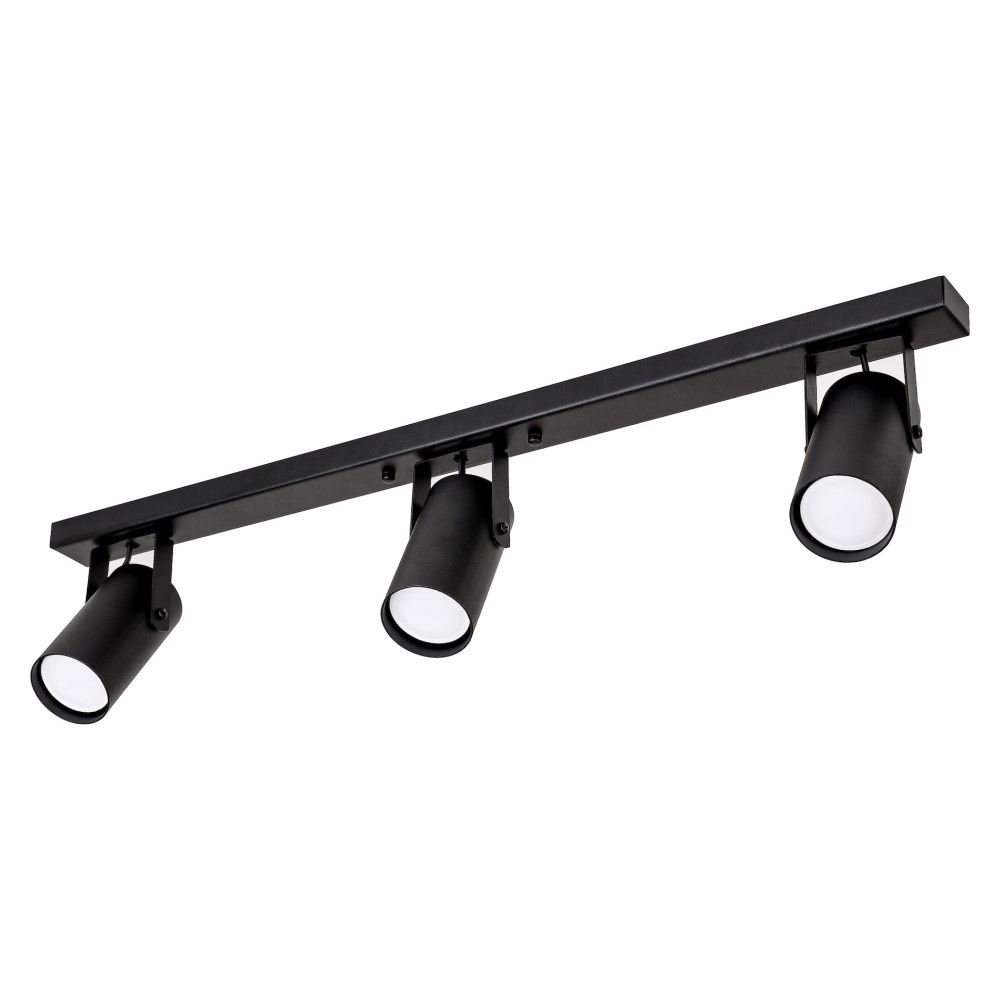Стельовий світильник (спот) на три лампи із металевими плафонами циліндричної форми, оснащені поворотним механізмом. Найкраще цей світильник підійде для освітлення до 9 м² приміщення, при використанні лампочок 6 Вт (LED), буде актуальним для невисоких стель.