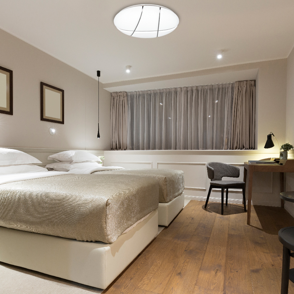 Дизайн. Лаконічний дизайн дозволяє використовувати світильник у більшості інтер'єрів будинків та квартир, залів ресторанів, кафе, готелів тощо.Високоякісні матеріали та комплектуючі. Корпус світильників виготовлений із якісного металу, розсіювач - із міцного пластику.