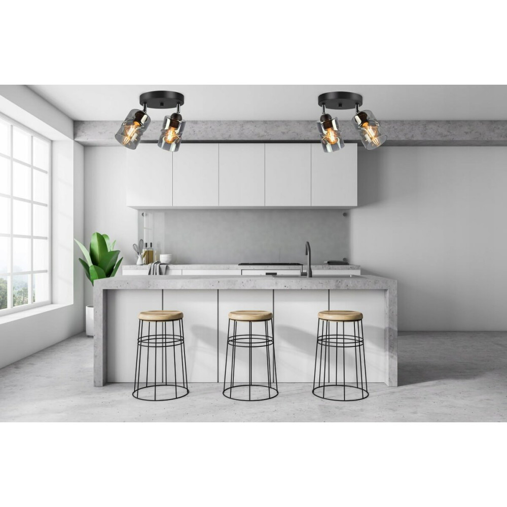 Світильник стельовий з поворотним механізмом Light House SRS-19666/2 BK+SM чорний, плафон димчастий
