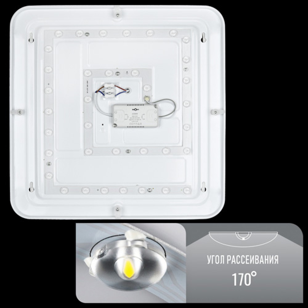 Накладний світлодіодний світильник квадратної плоскої форми на джерело світла, живиться від мережі 220В, без пульта управління.