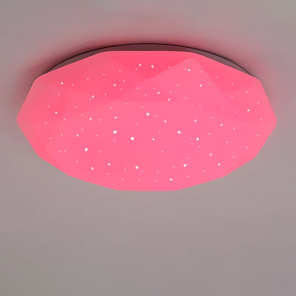 Накладний стельовий світлодіодний світильник круглої форми з регулюванням кольору освітлення, розсіювачем з ефектом "зоряне небо" та пультом д/в.