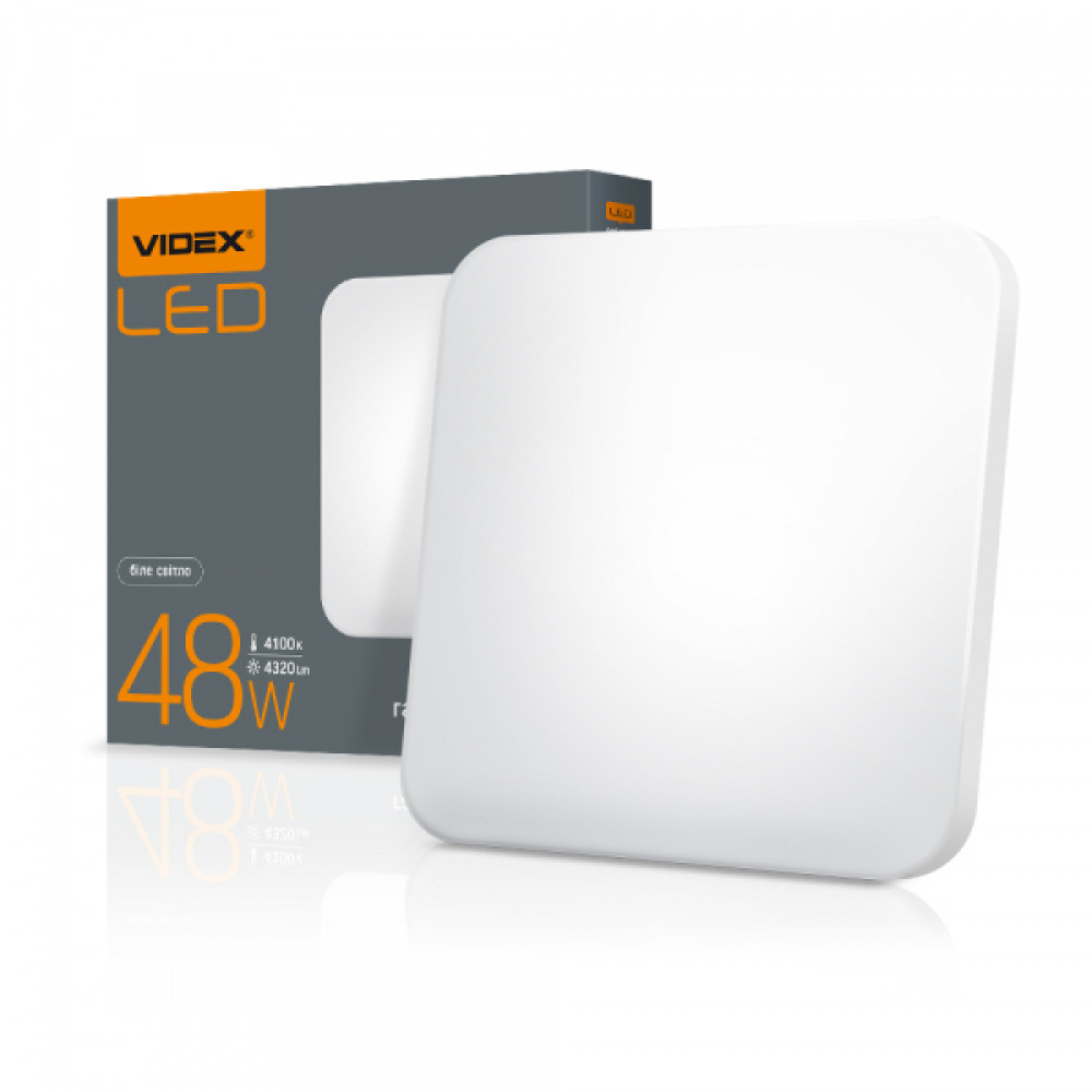 Світильник накладний VIDEX – це високотехнологічний освітлювальний прилад, який використовується в житлових приміщеннях як основне джерело освітлення. Стильний дизайн перетворює простір під різні завдання користувача. Альтернатива традиційним люстрам та іншим освітлювальним засобам. Встановлюється як на горизонтальній поверхні, так і на вертикальній. Після встановлення не потребує обслуговування протягом усього періоду експлуатації. Його розміри становлять лише 480x480x66мм.