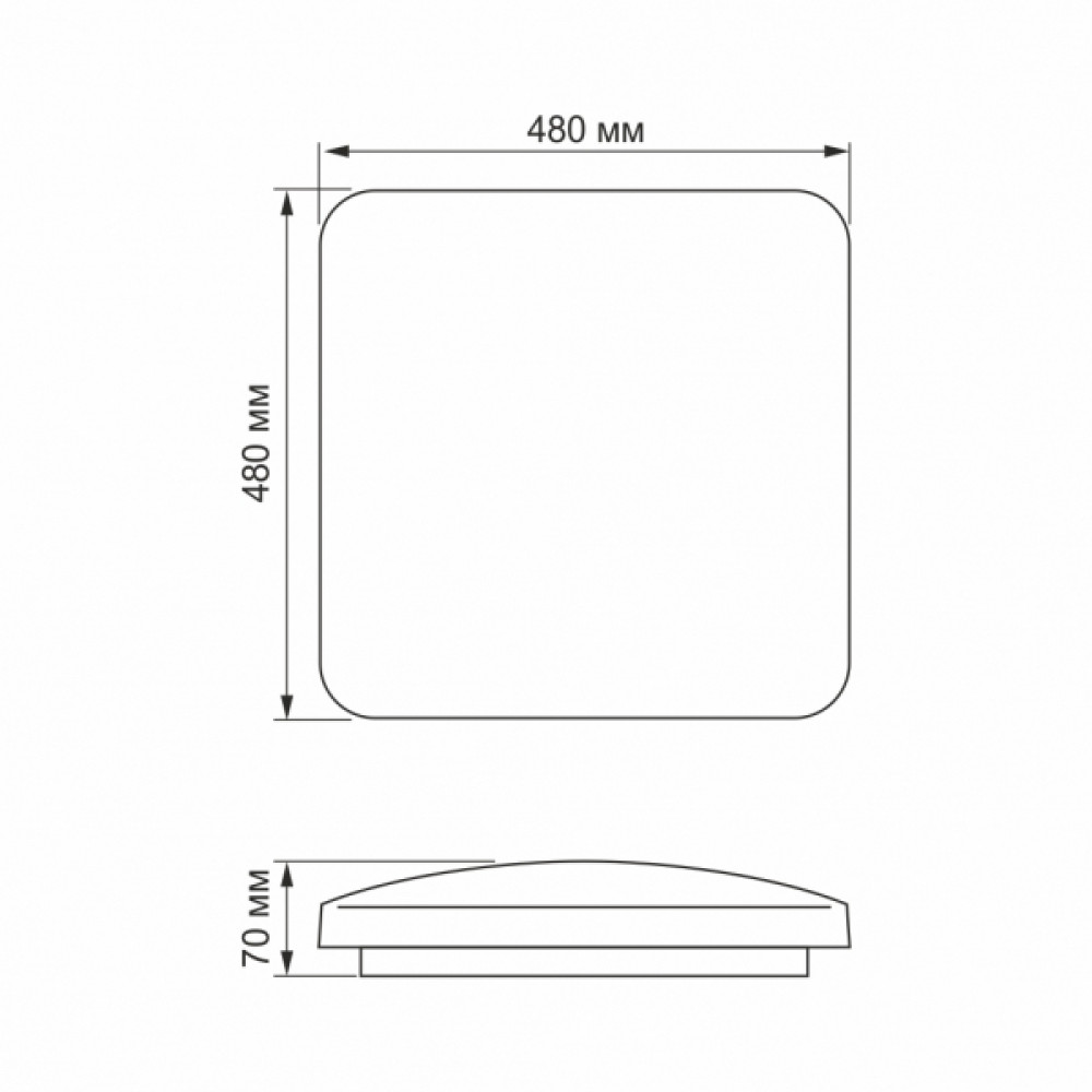 Довжина світильника: 480 мм;Ширина світильника: 480 мм;