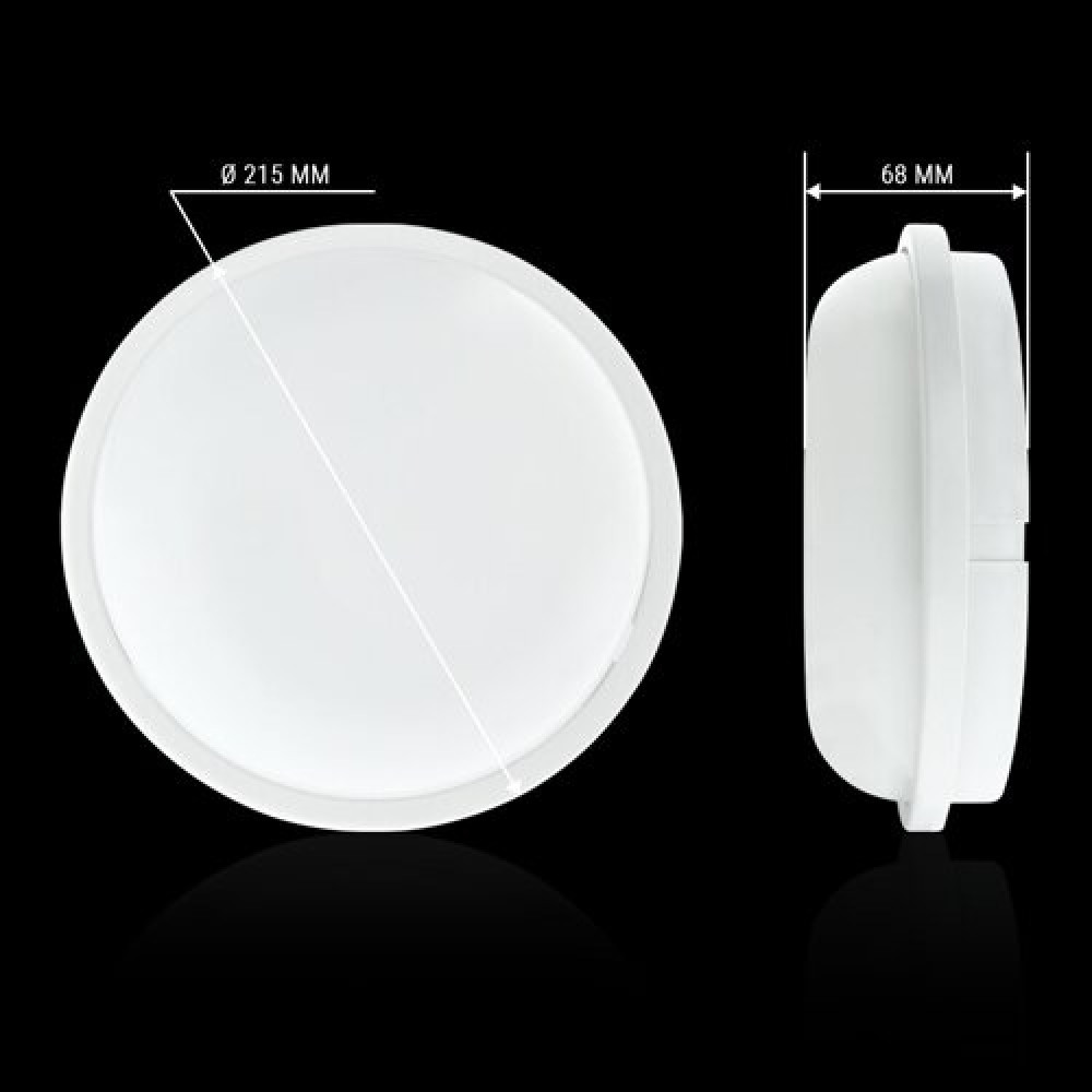 Даний накладний світильник з датчиком руху має білий колір і овальну форму. Потужність виробу становить 20 Вт, що еквівалентно 180 Вт у перерахуванні на лампу розжарювання. Світильник випромінює світловий потік 1800 лм, забезпечуючи світловіддачу 90 лм/Вт і кути розльоту променів до 120°. Відтінок свічення – холодний, що відповідає колірній температурі 6000 К, індекс кольору – 70 одиниць. Напруга живлення – 185-265 В, клас захисту – IP65.