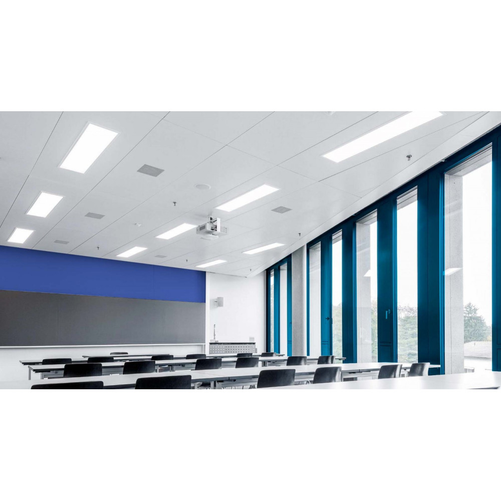 Стельовий врізний світлодіодний світильник прямокутної форми має денний колір освітлення.
