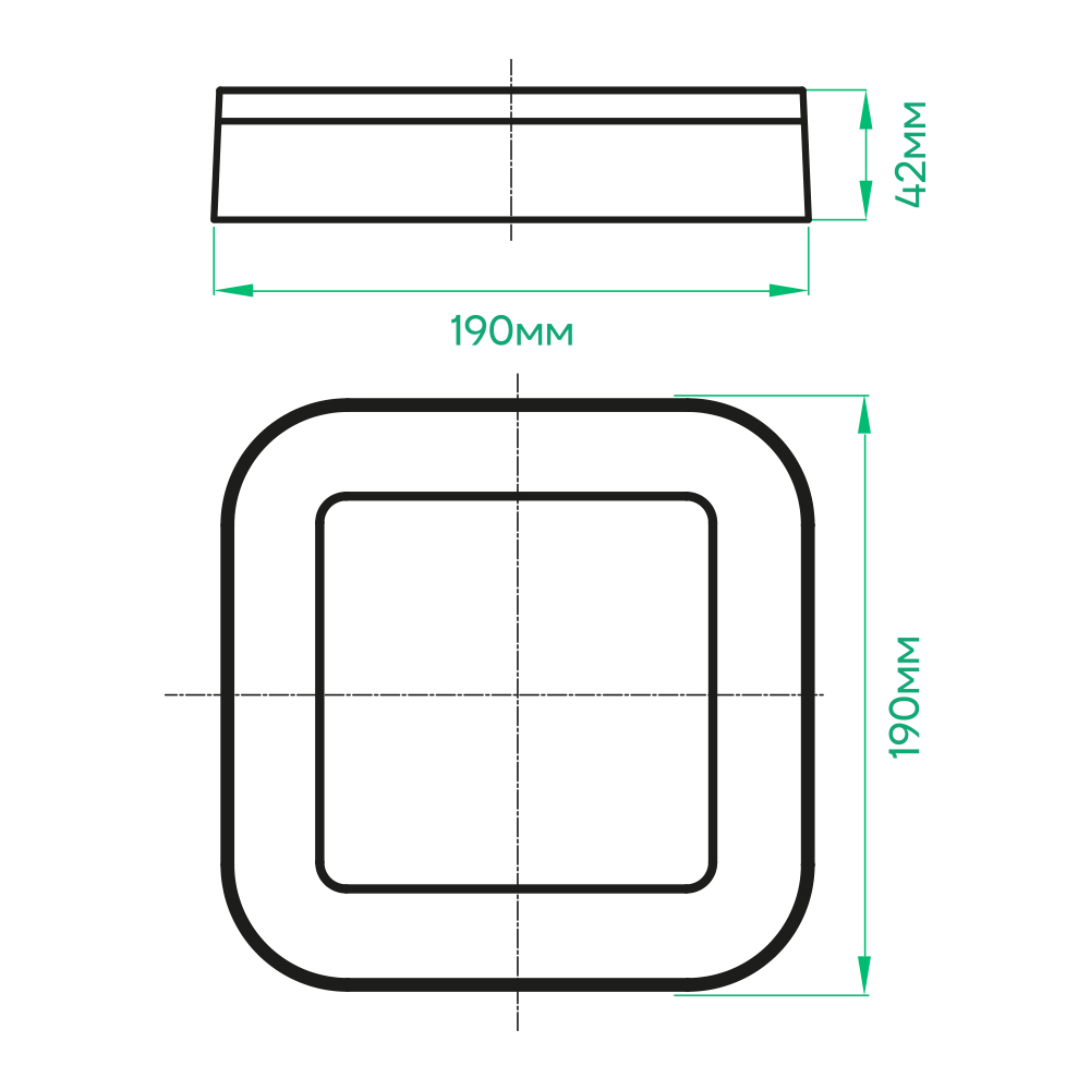 Довжина світильника: 190 мм;Ширина світильника: 190 мм;