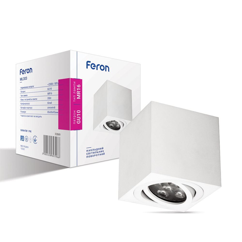 Накладний світильник Feron ML303 може використовуватися як основне, так і акцентне освітлення у сфері інтер'єрного підсвічування житлових, торгових та адміністративних приміщень, кафе та ресторанів, виставкових залів, галерей і т.д.