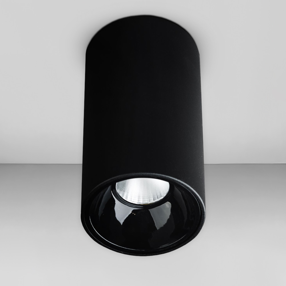 Точковий накладний світлодіодний світильник форми циліндра, живиться від мережі 220В, має одне джерело світла на 7W. Ідеально підходить для низьких стель.