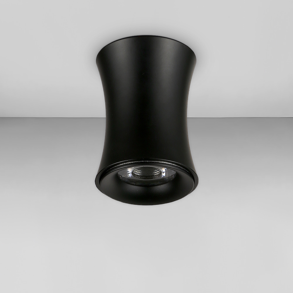 Точковий накладний світлодіодний світильник форми увігнутого циліндра, живиться від мережі 220В, має одне джерело світла на 7W. Ідеально підходить для низьких стель.